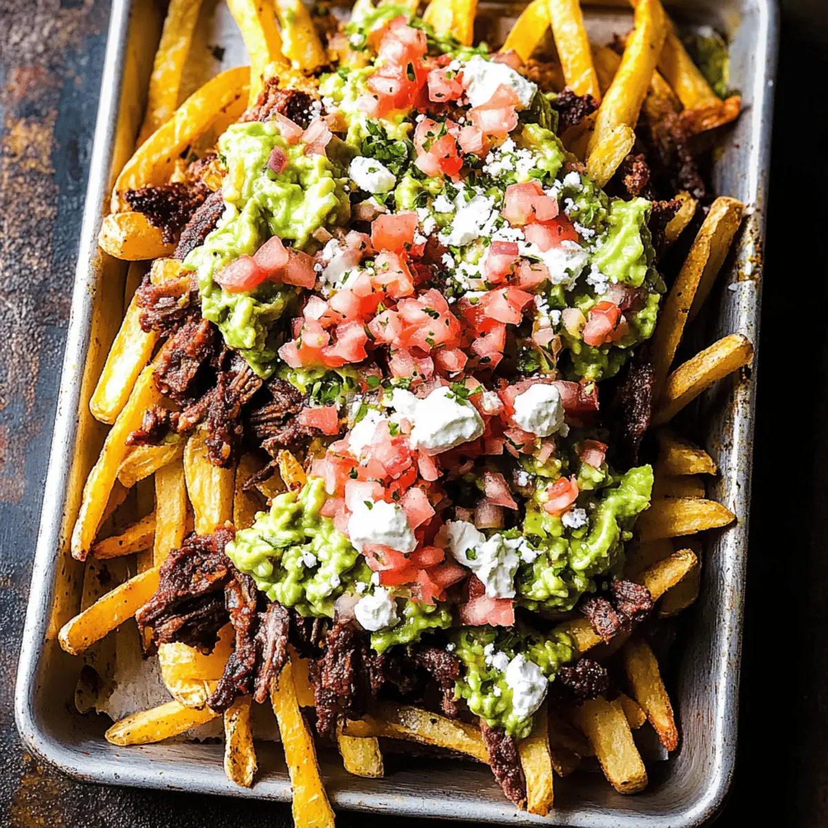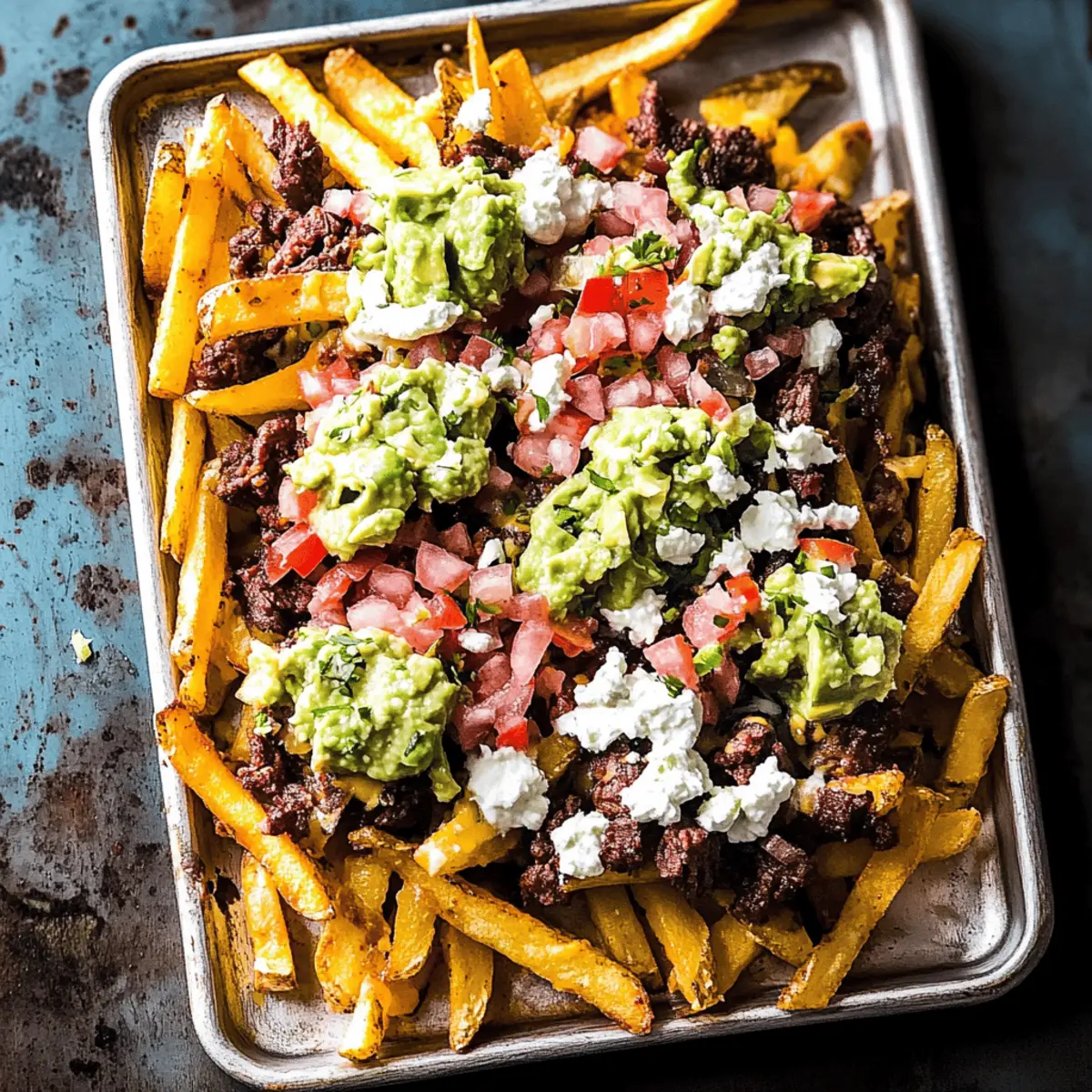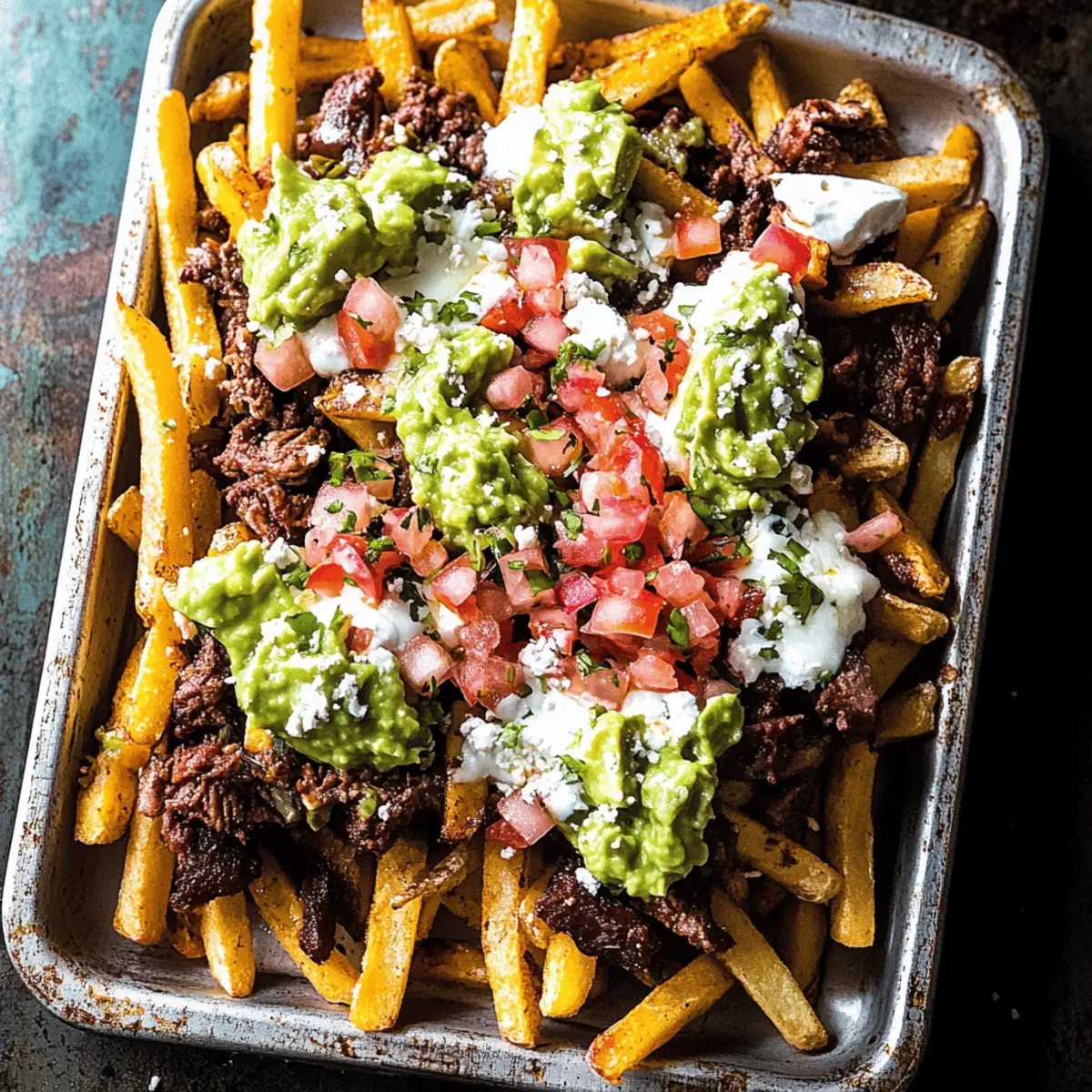“Did you know that Carne Asada Fries originate from the vibrant streets of San Diego? As a passionate home chef, discovering this tasty dish felt like stumbling upon a culinary treasure that’s perfect for game days or cozy weeknight dinners. These cheesy, crispy fries topped with succulent carne asada, zesty pico de gallo, and creamy guacamole bring comfort and flavor to any table. What I love most about these Carne Asada Fries is how customizable they are—you can easily swap ingredients based on your personal taste or whatever you have on hand. Plus, they’re quick and easy to whip up, making them a sure hit whether you’re hosting friends or craving a satisfying meal at home. Ready to transform your next snack into a flavor-packed adventure?” Why Are Carne Asada Fries So Popular? Irresistible Crunch: The combination of crispy fries and melting cheese creates an unforgettable texture. Flavor Explosion: With savory carne asada, zesty pico de gallo, and creamy guacamole, each bite is a flavor bomb that everyone will adore. Versatile Creation: You can easily customize toppings based on your cravings—add jalapeños for spice or swap refried beans for black beans for a twist! Perfect for Any Occasion: Whether it’s game day, a summer BBQ, or an easy weeknight dinner, these fries will impress your guests and satisfy your family. Quick Prep: From marinating to baking, you can have these mouthwatering fries ready in no time. Feel free to explore other delightful recipes, like loaded nachos or air-fried sweet potato fries, for more flavor-packed ideas! Carne Asada Fries Ingredients For the Carne Asada Carne Asada – Juicy, marinated steak that provides the main protein; can substitute with pollo asado for a chicken version. For the Fries Frozen French Fries – Creates a crispy base; pre-cooked to save time; baked or air-fried for best results. For the Toppings Refried Beans – Adds creaminess and texture; warm before use for easy application. Shredded Monterey Jack Cheese – Provides a rich, melty topping; alter according to cheese preferences. Shredded Cheddar Cheese – Complements Monterey Jack for a delicious cheesy blend; feel free to mix different cheeses. Pico de Gallo – Fresh topping that adds brightness and acidity; consider store-bought for convenience. Guacamole – Creamy addition enhances flavor; use fresh homemade or quality store-bought. Sour Cream – Adds a tangy finish; optional for those who prefer a lighter option. Crumble Cotija Cheese – Offers a salty, crumbly texture; optional for added flavor. Minced Fresh Cilantro – Enhances freshness; optional based on taste preference. Step‑by‑Step Instructions for Carne Asada Fries Step 1: Prepare Carne Asada Start by marinating your carne asada in your favorite spices for 1 to 8 hours to enhance flavor. Preheat a grill or cast-iron skillet over medium-high heat and cook the marinated steak for about 7-10 minutes, flipping halfway, until it reaches a medium doneness (internal temperature of 145°F). Once cooked, let the carne asada rest for a few minutes before dicing it into bite-sized pieces. Step 2: Cook Fries While the carne asada rests, prepare your frozen French fries according to package instructions—baking or air-frying them until golden and crispy. This process typically takes about 20-30 minutes. Ensure they are spread in a single layer on a baking sheet for even cooking, and keep an eye on them toward the end for that perfect crispiness. Step 3: Layer Toppings Once the fries are crispy, transfer them to a parchment-lined baking sheet. Quickly drizzle warmed refried beans over the fries, ensuring even coverage. Then, generously sprinkle with a mix of shredded Monterey Jack and cheddar cheeses. Broil in the oven for 4-5 minutes, until the cheese is melted and bubbly—this is where the magic of carne asada fries truly begins! Step 4: Finish Topping Remove the baking sheet from the oven and immediately add the diced carne asada on top of the cheesy fries. Next, dollop on fresh guacamole and pico de gallo, followed by optional toppings like sour cream, crumbled cotija cheese, and minced fresh cilantro. Serve immediately while everything is warm and melty, making those carne asada fries irresistible! How to Store and Freeze Carne Asada Fries Fridge: Store leftover assembled carne asada fries in an airtight container for up to 3 days. For best results, keep toppings separate to maintain crispness. Freezer: Freeze components separately (fries and carne asada) in airtight containers or freezer bags for up to 2 months. Thaw in the fridge before reheating for optimal results. Reheating: Reheat fries in an air fryer or oven for the best texture, approximately 10-15 minutes at 375°F. Avoid using the microwave, as it may make them soggy. Meal Prep: Prepare toppings in advance and store them in the fridge to assemble fresh carne asada fries on game day or busy weeknights. What to Serve with Ultimate Carne Asada Fries Imagine gathering around the table, sharing crispy, cheesy goodness while the aromas of savory toppings fill the air. Crispy Coleslaw: A crunchy and tangy side that adds a refreshing contrast to the rich flavors of the fries. The crunch complements the profile of the carne asada perfectly. Zesty Corn Salad: Bright, sweet corn mixed with lime and cilantro brings vibrant flavors, making it a delightful side to balance the richness of the cheese and carne asada. Grilled Vegetables: Mixed grilled veggies like bell peppers and zucchini add a smoky touch. Their slight char enhances the overall experience of your carne asada feast. Spicy Guacamole Salsa: For those who crave a bit of heat, this spicy twist on guacamole will elevate your meal, perfectly paired with the creamy toppings on your fries. Refreshing Limeade: A cold glass of limeade quenches thirst, adding just the right citrusy zing alongside the flavors of your dish. Churros for Dessert: Finish off with sweet churros lightly dusted with cinna