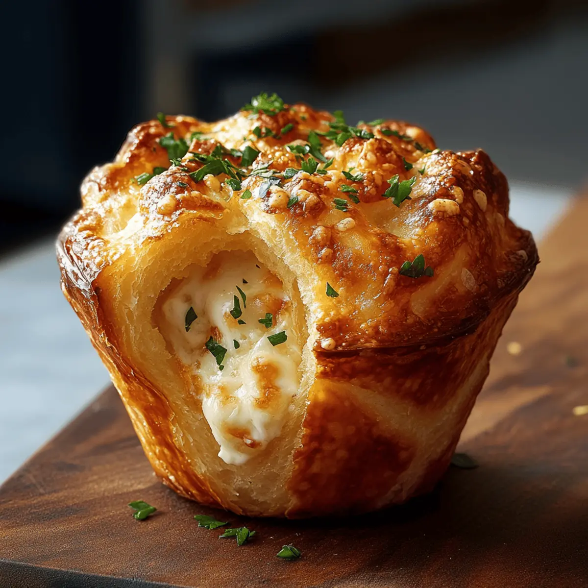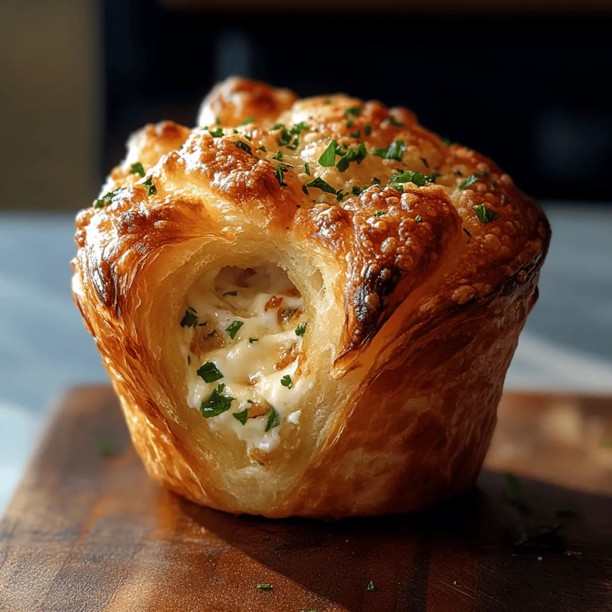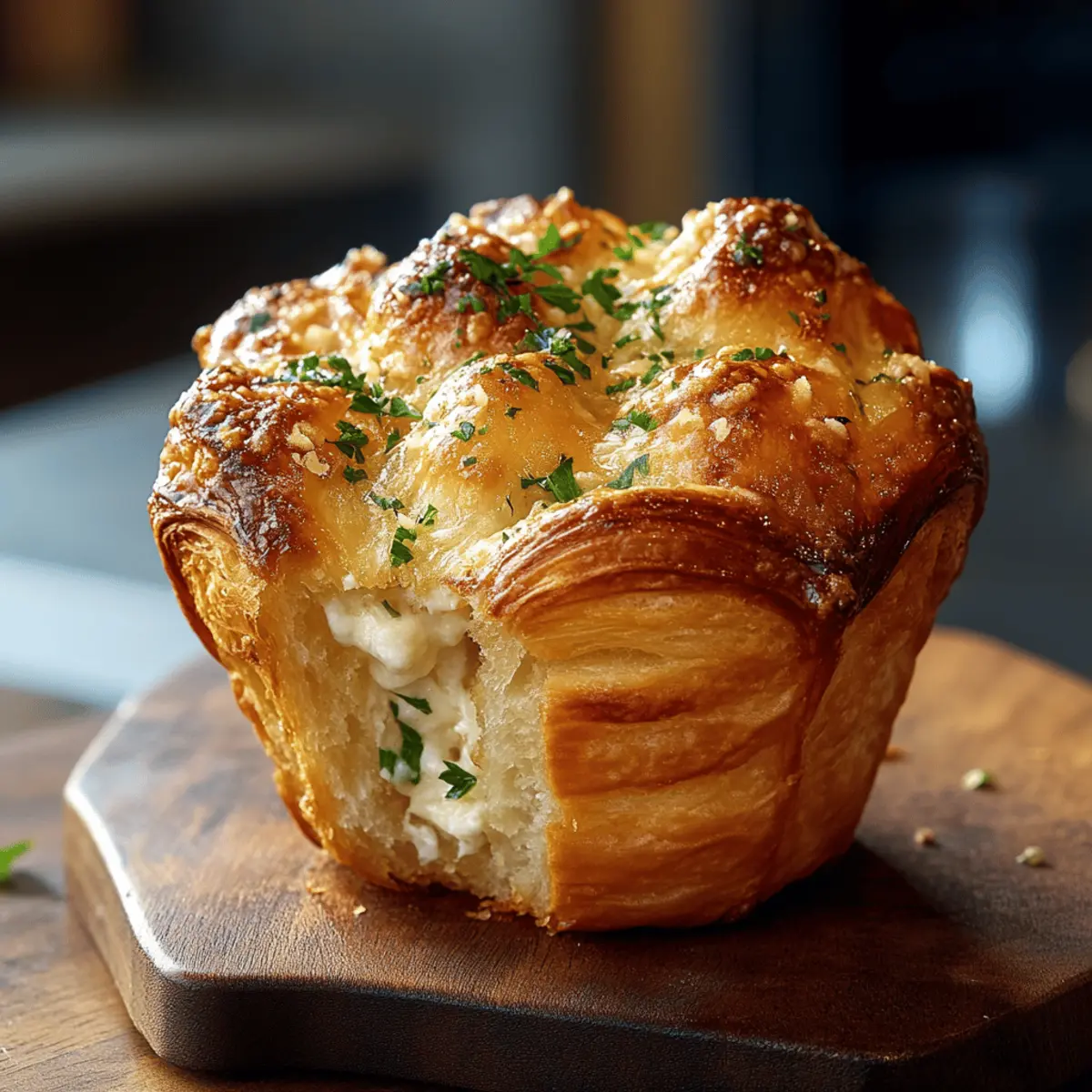 Experience the heavenly delight of Cheesy Garlic Cruffins, a blend of flaky pastries oozing with flavorful garlic and cheese.