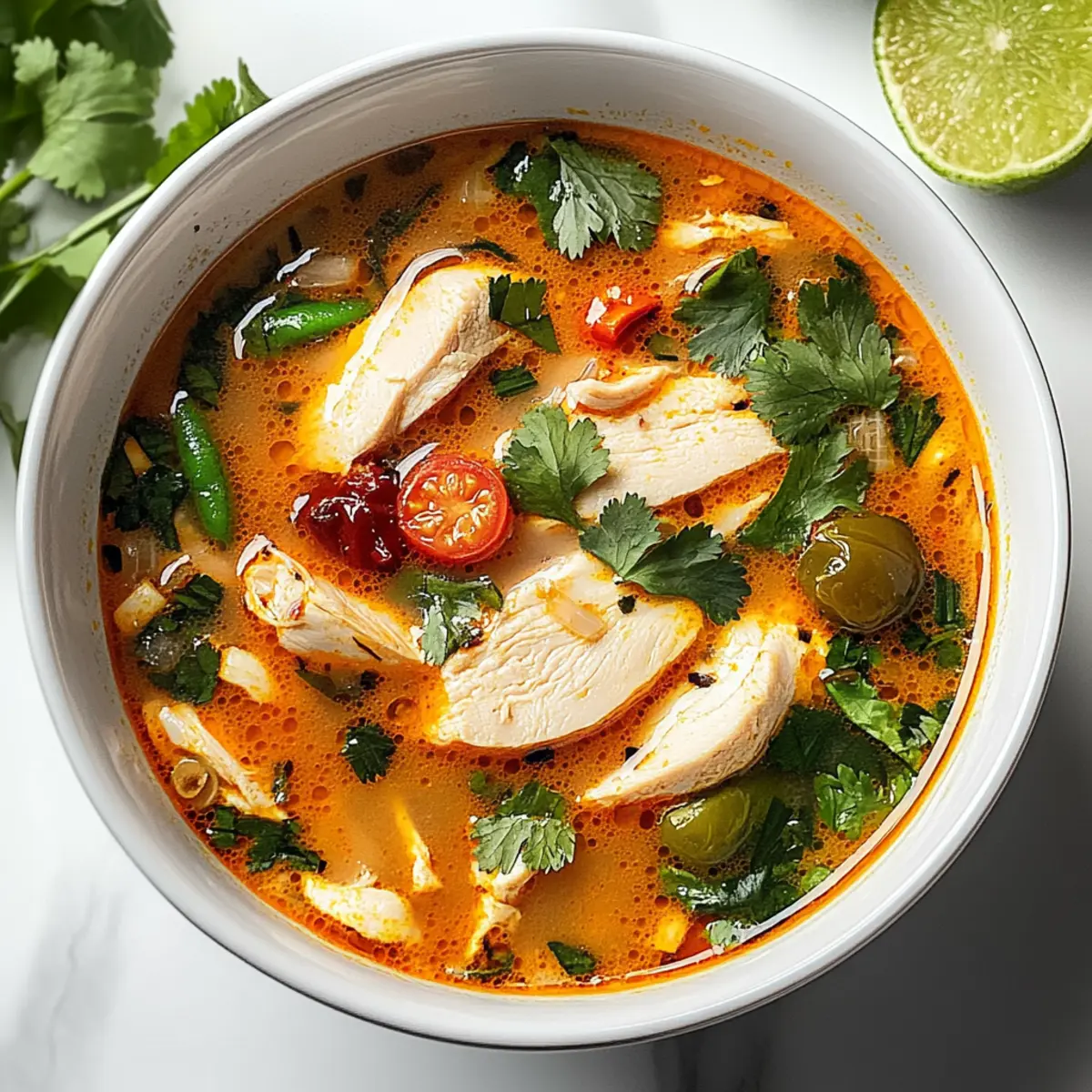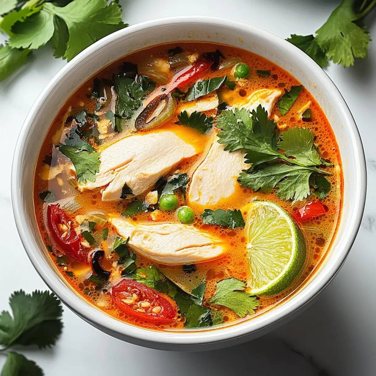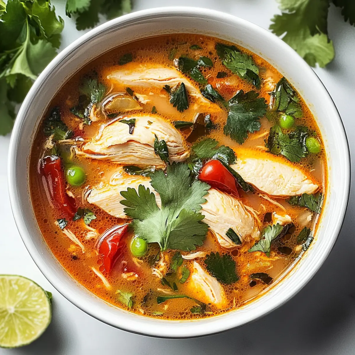 As I stood in my kitchen, the unmistakable scent of fresh lemongrass filled the air, transporting me straight to a bustling Thai market. This experience inspired my Quick & Easy Chicken Tom Yum Soup Recipe. The comforting combination of spicy and sour flavors is perfect for those evenings when the world feels chaotic, yet you crave something warm and invigorating. In under 30 minutes, you can whip up this delightful dish that embraces all the comforting qualities of traditional tom yum, but with a quick chicken twist that makes it an easy weeknight hero. Not only does this soup deliver on flavor, but it’s also gluten-free and a healthy alternative to takeout. Who wouldn’t want a bowlful of vibrant, aromatic goodness? So, are you ready to dive into this bowl of happiness? Let’s get cooking! Why is this Chicken Tom Yum Soup special? Uniqueness: This recipe puts a delightful spin on traditional tom yum by using chicken instead of shrimp, making it accessible for every palate. Comforting and Quick: In just under 30 minutes, you’ll have a nourishing meal, perfect for busy weeknights. Spicy and Sour: The harmonious blend of spices and fresh herbs invigorates your taste buds, bringing authentic Thai flavors home. Versatile: Feel free to customize with your favorite veggies or proteins, such as adding tofu for a vegetarian option. This soup joins the ranks of other favorites like Garlic Tomato Chicken and Herb Roasted Chicken in delivering comforting satisfaction. Crowd-Pleasing: Share this dish with friends and family, and watch as they fall in love with its warmth and vibrant taste! Chicken Tom Yum Soup Ingredients • A delightful mix of flavors awaits! For the Broth Chicken Broth – Serves as the rich base that makes this Chicken Tom Yum Soup flavorful; opt for low-sodium if you prefer a healthier option. Fresh Lemongrass – Adds aromatic citrus notes; use 3-4 stalks, smashed to release their essential oils. Fresh Galangal – Contributes unique warmth and depth; use 8 thin slices without peeling. Kaffir Lime Leaves – Offers a fragrant citrus lift; use 6 leaves, torn to maximize flavor release. For the Soup Fresh Thai Chilies – Provides the desired heat level; adjust 2-5 based on your spice tolerance and lightly smash them before adding. White Onion – Adds sweetness and depth; use 1 small, thinly sliced. Mushrooms – Offers texture and umami richness; use 2 cups of your favorite variety, avoiding shiitake for the best flavor. Tomatoes – Contributes a subtle sweetness; add 2-3 small tomatoes cut into wedges towards the end. Chicken Thighs or Breasts – The heart of this dish; use 1 lb, thinly sliced, with thighs providing more flavor. For the Seasoning Thai Roasted Chili Paste (optional) – Enhances the soup’s depth; start with 3-4 tbsp and adjust to taste. Tamarind Paste – Adds a tangy depth; use 1-2 tbsp, adjusting to your preference. Lime Juice – Brightens the overall flavor; juice from 2-3 limes will do beautifully. Fish Sauce – Infuses umami and saltiness; use 2-3 tbsp, to taste. Brown Sugar – Balances the heat and acidity; 1 tbsp should suffice, but feel free to adjust. Cilantro – A fresh garnish that elevates the dish; chop coarsely and use as desired. Now that you have all the ingredients ready, let’s jump into the cooking process that will warm your heart and fill your kitchen with irresistible aromas! Step‑by‑Step Instructions for Chicken Tom Yum Soup Recipe Step 1: Prepare Ingredients Begin by prepping your ingredients for the Chicken Tom Yum Soup. Smash 3-4 stalks of fresh lemongrass, slice 8 pieces of galangal without peeling, and tear 6 kaffir lime leaves to release their aromatic oils. Lightly smash 2-5 fresh Thai chilies based on your preferred spice level, and slice 1 small white onion thinly to add sweetness to the broth. Step 2: Infuse Broth In a large pot, pour in 4 cups of chicken broth and bring it to a rolling boil over medium-high heat. Add the smashed lemongrass, galangal slices, torn kaffir lime leaves, and smashed chilies. Allow this aromatic concoction to boil for 15 minutes, letting the spices infuse the broth with vibrant flavors and fragrances that will fill your kitchen. Step 3: Add Chicken & Vegetables After infusing the broth, lower the heat to medium and incorporate 1 lb of thinly sliced chicken thighs or breasts, along with the sliced white onion and 2 cups of your favorite mushrooms. Simmer for an additional 15 minutes until the chicken is fully cooked and opaque, monitoring the soup for tenderness and a harmonious blend of flavors. Step 4: Add Tomatoes Once the chicken is cooked through, stir in 2-3 small tomatoes cut into wedges. Turn off the heat, allowing the residual warmth to gently cook the tomatoes, enhancing their sweetness without losing their shape or freshness. This step adds a lovely contrast of colors and flavors to your Chicken Tom Yum Soup. Step 5: Season to Taste Incorporate 3-4 tablespoons of Thai roasted chili paste (if using), 1-2 tablespoons of tamarind paste, juice from 2-3 limes, and 2-3 tablespoons of fish sauce into the pot. Sprinkle in 1 tablespoon of brown sugar to balance the heat and acidity, stirring until all ingredients are well-combined and season to your taste, adjusting as necessary. Step 6: Serve Ladle the fragrant Chicken Tom Yum Soup into warm bowls and garnish generously with freshly chopped cilantro. For a complete meal, serve alongside a steaming bowl of jasmine rice, allowing the flavors to meld beautifully on the palate. Enjoy the comforting warmth and vibrant essence of this beloved Thai dish! Chicken Tom Yum Soup Recipe Variations Feel free to let your creativity shine and customize this comforting dish to suit your taste! Vegetarian: Replace chicken with tofu and opt for vegetable broth for a plant-based delight. Shrimp Twist: For a traditional flair, swap chicken with shrimp, cooking until just pink and tender. Mushroom Medley: Experiment with different mushrooms—try sh