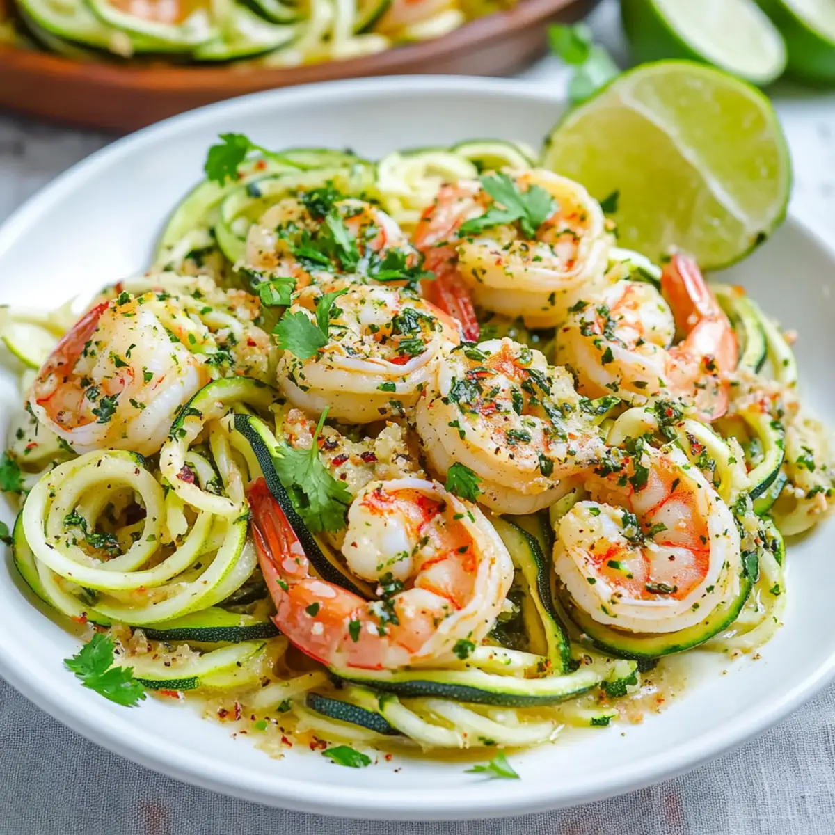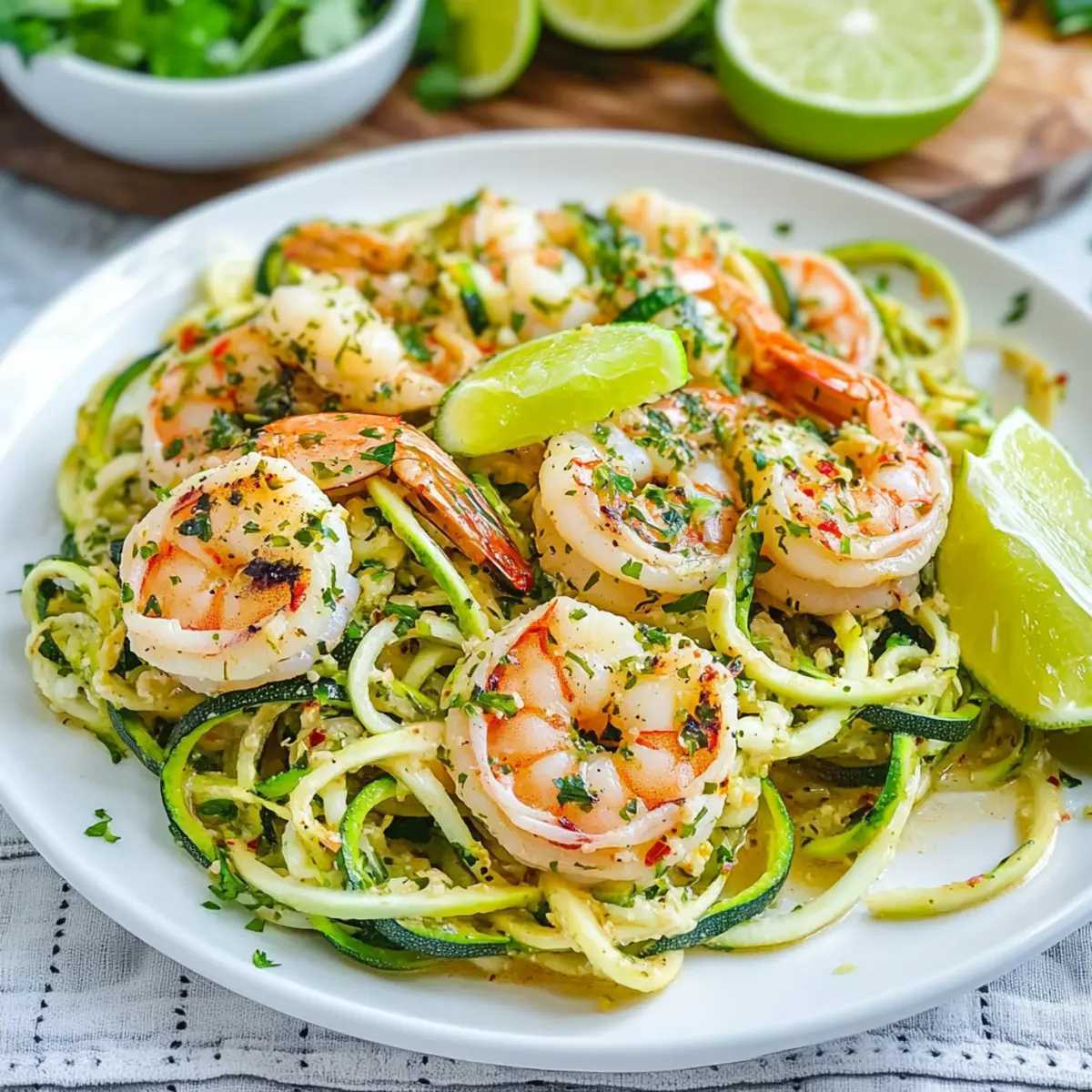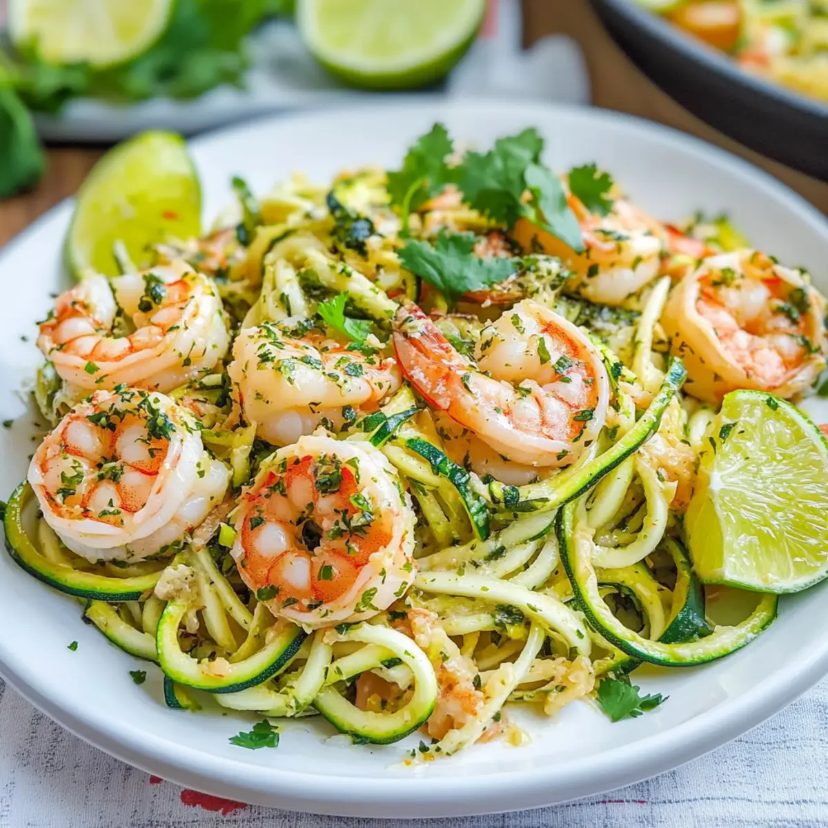 The sizzling sound of shrimp dancing in a buttery lime sauce instantly transports me to sun-soaked summer evenings, where every bite feels like a celebration. Today, I’m thrilled to share my recipe for Cilantro Lime Shrimp Scampi with Zucchini Noodles—a delightful, quick-and-easy meal that packs a punch of flavor while keeping things light and healthy. In just 20 minutes, you can whip up this gluten-free, low-carb dish that’s not only a showstopper for dinner parties but also perfect for those busy weeknights when you crave something homemade. Fresh zucchini noodles replace traditional pasta, adding a nutritious twist to classic scampi. Who else is ready to dive into this refreshing meal that’s as vibrant as it is delicious? Why is this dish a must-try? Flavor-Packed Delight: The marriage of buttery richness and zesty lime creates a mouthwatering sauce that elevates this dish beyond the ordinary. Quick and Easy: Whip up this meal in just 20 minutes, making it ideal for busy weeknights yet impressive enough for dinner guests. Healthy Twist: Using zucchini noodles instead of pasta not only keeps this meal low-carb but also adds a delightful crunch, lighter than traditional scampi. Customizable Goodness: Swap shrimp for chicken or tofu to suit your preferences or add colorful veggies, enhancing both the nutrition and aesthetic appeal—just like my Summer Corn Zucchini recipe! Crowd-Pleaser: Bursting with vibrant flavors, this dish is bound to impress both family and friends alike, making it a go-to favorite. Cilantro Lime Shrimp Scampi Ingredients • Get ready to bring the flavors of summer to your table with these fresh ingredients! For the Sauce Butter – Adds rich flavor and helps create a beautifully emulsified sauce. Substitution: Use olive oil for a dairy-free version. Garlic – Infuses the dish with aromatic depth. Fresh garlic is best for flavor, enhancing the scampi. White Wine or Broth – Essential for deglazing the pan, bringing out the flavors. Substitution: Use vegetable broth for a lighter option. Red Pepper Flakes (optional) – Adds a dash of heat and spice. Substitution: Omit for a milder taste or use crushed black pepper instead. Lime Juice – Brightens the flavor and amplifies the shrimp’s natural sweetness. Use freshly squeezed for the best taste. Lime Zest – Gives an extra zing and aromatic punch. Use fresh zest for maximum flavor. For the Shrimp Jumbo Shrimp (16-24) – The star of the dish, providing tender and juicy bites. Note: Ensure they are shelled and deveined for convenience before starting. For the Zoodles Zucchini – Serves as a low-carb alternative to pasta. Preparation: Spiralize or use a vegetable peeler to create noodles. For Seasoning Cilantro (Chopped) – Adds a fresh herbaceous flavor that pairs wonderfully with lime. Substitution: Use Italian flat-leaf parsley for those who dislike cilantro. Salt and Pepper – Essential for balancing flavors. Adjust to taste for the perfect seasoning. Step‑by‑Step Instructions for Cilantro Lime Shrimp Scampi with Zucchini Noodles Step 1: Cook the Shrimp Begin by melting 2 tablespoons of butter in a large skillet over medium-high heat until it becomes frothy. Once the butter is ready, add the shelled and deveined jumbo shrimp to the pan, cooking for 2 minutes on one side. When they turn pink and opaque, flip the shrimp and continue to cook for an additional minute. Remove the shrimp from the skillet and set them aside, keeping them warm. Step 2: Prepare the Sauce In the same skillet, pour in ½ cup of white wine (or broth) along with the juice of one lime to deglaze the pan. Use a spatula to scrape up any delicious brown bits left from cooking the shrimp. Allow the mixture to simmer for about 2 minutes, allowing it to reduce slightly while the aroma fills your kitchen. This step builds a flavorful base for your Cilantro Lime Shrimp Scampi. Step 3: Cook the Zucchini Noodles Next, add your freshly spiralized zucchini noodles to the skillet, gently tossing them to coat in the sauce. Cook for around 2 minutes, just until the noodles are tender but still have a slight crunch. This quick sauté helps them soak up the vibrant flavors without becoming mushy. Season the zoodles with salt and pepper to taste, keeping the dish light yet delicious. Step 4: Combine and Finish Return the cooked shrimp to the skillet, along with the zest of one lime and a handful of chopped cilantro. Toss everything together in the pan until the shrimp are heated through and well coated in the buttery sauce, which should take about 1-2 minutes. Remove from heat, ensuring every bite is infused with zesty goodness, while the fresh cilantro adds a pop of color and flavor. What to Serve with Cilantro Lime Shrimp Scampi Create a delightful and complete dining experience by pairing your dish with these perfect accompaniments. Creamy Avocado Salad: This refreshing salad adds a subtle creaminess that balances the zesty flavors of scampi beautifully. Toss sliced avocado with lime juice and cilantro for a quick side. Garlic Bread: Crunchy, buttery garlic bread is a classic choice for mopping up that delicious sauce. Its rich texture perfectly offsets the lightness of zucchini noodles. Quinoa Pilaf: Fluffy quinoa with toasted nuts and fresh herbs provides a satisfying nutty flavor and additional protein, making it a wholesome and hearty side. Grilled Asparagus: Tender, lightly charred asparagus drizzled with olive oil brings a smoky flavor that complements the citrus notes of the shrimp scampi wonderfully. Coleslaw: A crisp, tangy coleslaw adds refreshing crunch, contrasting the tender shrimp and zoodles, while the vinegar dressing enhances the dish’s brightness. Mango Salsa: Vibrant and sweet, mango salsa introduces a tropical note that pairs delightfully with the shrimp’s citrusy zing and adds a burst of color to your plate. Chilled White Wine: A glass of chilled Sauvignon Blanc or a light, citrus-infused cocktail enhances the din