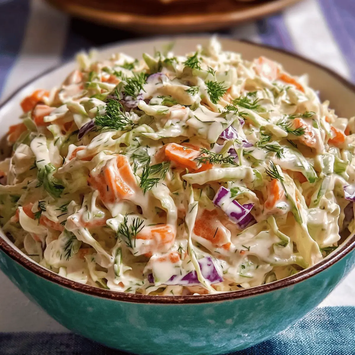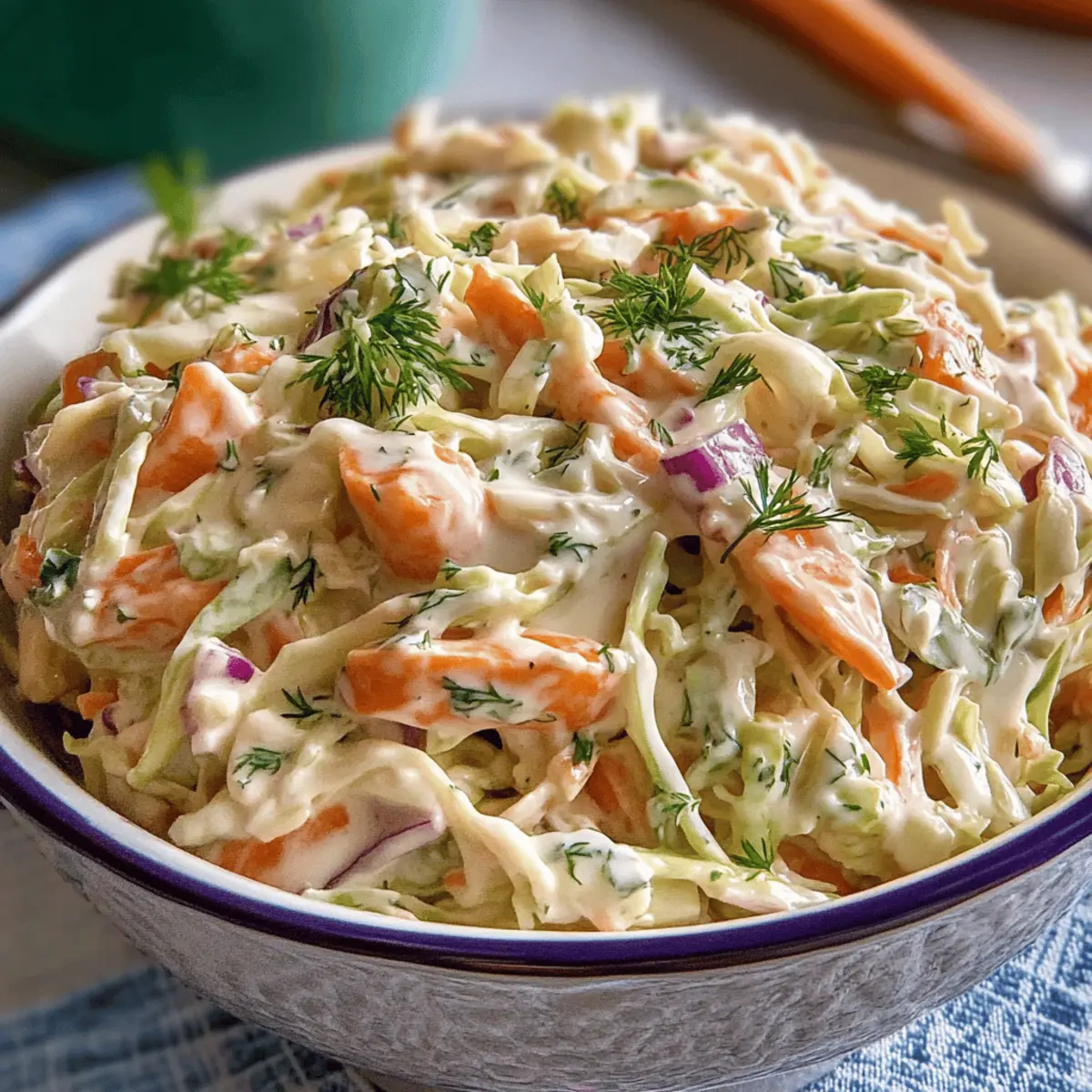 With summer gatherings just around the corner, I find myself craving the perfect side dish that screams sunshine and deliciousness. Enter my Classic Coleslaw Recipe, combining crisp veggies with a creamy dressing made from mayonnaise and a zing of apple cider vinegar. This dish whips up in just 20 minutes, making it effortless for potlucks, picnics, or BBQs. Not only does it add a refreshing crunch to your plate, but it also balances out those rich, smoky flavors that we all love. If you’re looking for a simple, crowd-pleasing addition to your next cookout or a way to elevate your meals, this coleslaw hits the spot! Ready to dive in and discover how easy it is to bring a taste of summer to your table? Why is this coleslaw a must-try? Simplicity: Whipping up this classic coleslaw requires just 20 minutes and minimal prep. Perfect for those busy days! Creamy Delight: The combination of mayonnaise and apple cider vinegar creates a dressing that’s irresistibly creamy and tangy, enhancing the fresh veggies. Crowd-Pleaser: Serve it at BBQs, picnics, or potlucks, and watch it disappear—everyone loves a good coleslaw! Versatile Base: You can easily customize this recipe by swapping out mayo for Greek yogurt or adding in fruit like apples or raisins for a sweet twist. Make-Ahead: Just prepare it a day in advance, store it in the fridge, and let the flavors meld for an even tastier dish! Classic Coleslaw Recipe Ingredients • Simple and fresh ingredients to elevate your BBQ. For the Dressing Mayonnaise – Adds creaminess and richness; substitute with plain Greek yogurt for a lighter version. Apple Cider Vinegar – Provides tanginess and balances flavors; can be adjusted based on your taste preferences. Juice of 1 Lemon – Brightens the dish with acidity; freshly squeezed is best for maximum flavor. Kosher Salt (2 tsp.) – Enhances overall flavor; adjust to your liking. Black Pepper (1 tsp.) – Adds a touch of spice; feel free to modify based on your preference. For the Slaw Pre-shredded Coleslaw Mix (2 x 16-oz bags) – Saves prep time; no shredding required, but you can shred your own for a fresher texture. Chopped Parsley (1/4 cup) – Adds a fresh herbal note; substitute with cilantro for a different flavor twist. Chopped Fresh Dill (1/4 cup) – Complements the creamy dressing beautifully; omit for a simpler flavor profile. Step‑by‑Step Instructions for Classic Coleslaw Recipe Step 1: Make the Dressing In a large mixing bowl, combine the mayonnaise, apple cider vinegar, and freshly squeezed lemon juice. Whisk these ingredients together smoothly until the mixture is well blended and creamy, about 1–2 minutes. The dressing should be thick and shiny, ready to elevate your Classic Coleslaw. Step 2: Season the Dressing Add kosher salt and black pepper to the dressing mixture, adjusting to your taste. Continue whisking for another 30 seconds until all the ingredients are well incorporated, enhancing the flavor profile of your Classic Coleslaw. The seasoning should complement the creaminess of the dressing without overpowering it. Step 3: Combine the Vegetables Gently fold in the pre-shredded coleslaw mix, chopped parsley, and fresh dill into the dressing. Using a spatula, toss the mixture thoroughly for about 2–3 minutes until the vegetables are evenly coated in the creamy dressing. The slaw should be vibrant and fresh, signaling that it’s ready for chilling. Step 4: Chill the Coleslaw Cover the mixing bowl tightly with plastic wrap and refrigerate the coleslaw for at least 15 minutes. This chilling time is crucial as it allows the flavors to meld together, making the coleslaw more delicious. After chilling, the texture will become crisp, crunchy, and beautifully flavored. Step 5: Serve and Enjoy Once chilled, give the coleslaw a gentle stir to redistribute the dressing. Serve it cold as a delightful side dish at your next BBQ or picnic. A vibrant and creamy Classic Coleslaw will not only brighten your plate, but it will also complement any grilled entrees perfectly. Expert Tips for Classic Coleslaw Recipe Chill Time Matters: Let the coleslaw chill for at least 15 minutes to allow flavors to meld; this step enhances the taste significantly. Fresh Ingredients: Always opt for fresh herbs like dill and parsley, as they elevate the coleslaw’s flavor—dried herbs won’t yield the same freshness. Adjust the Tang: If you prefer a milder tang, start with less apple cider vinegar, then adjust according to your taste—everyone’s palate is different! Texture Counts: For a crunchier bite, shred your own cabbage and carrots instead of using pre-shredded mix; it’s worth the extra effort! Make-Ahead Strategy: Prepare your coleslaw a day in advance for optimal flavor; just remember to store the dressing separately until serving for a crisp texture. Classic Coleslaw Recipe Variations Feel free to unleash your creativity and add a personal twist to this beloved classic. Greek Yogurt: Swap mayonnaise for Greek yogurt to lighten the recipe while keeping that creamy texture intact. For a refreshing take, highlight the tang from yogurt to balance the veggies beautifully. You won’t miss the mayo! Fresh Fruits: Toss in diced apples or raisins for a delightful sweetness that will surprise your taste buds. The contrast between the crunchy veggies and juicy fruit elevates the coleslaw to a new flavor dimension, making it a hit at potlucks. Herb Swaps: Experiment with fresh herbs like cilantro or mint for a unique flavor profile. Each herb brings its own personality, so feel free to mix and match with your favorites for a fresh twist. Spicy Kick: Add finely diced jalapeños or a dash of hot sauce to introduce some heat. Balancing creaminess and spice, this variation caters to those looking for a little extra excitement on their plate. Crunchy Add-Ins: Toss in some sunflower seeds or almonds for an extra crunch and nutty flavor. The added texture not only enhances the overall experience but also