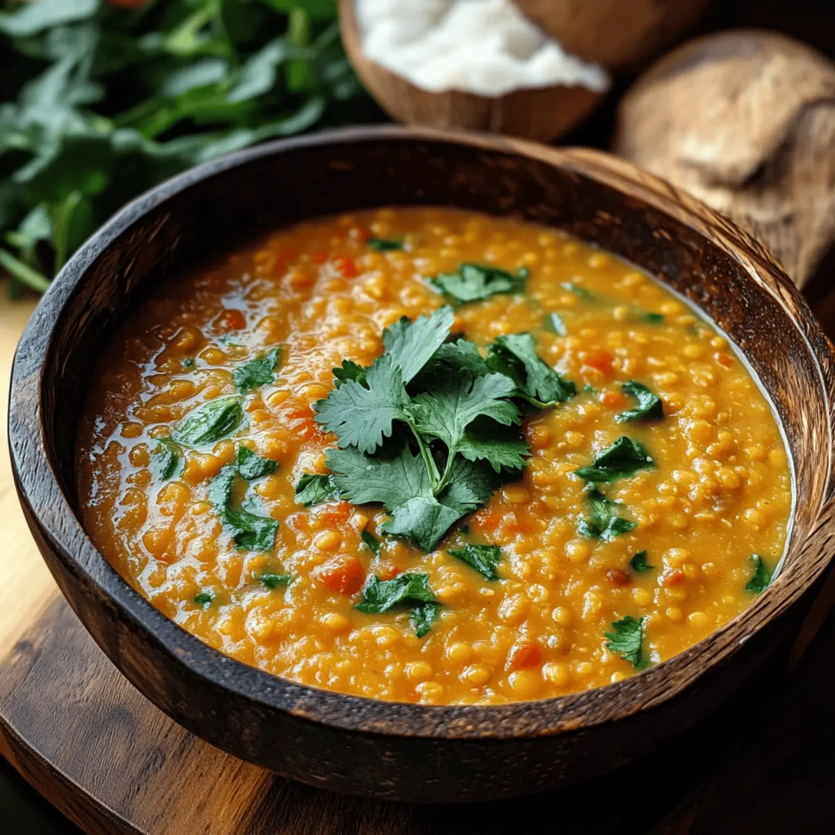 There’s nothing quite like coming home to a warm bowl of soup on a chilly evening. My Creamy Thai Coconut Red Lentil Soup is not just a dish; it’s a cozy hug in a bowl, ready to soothe your soul after a long day. Packed with protein-rich red lentils and creamy coconut milk, this vegan-friendly and gluten-free recipe is both quick to prepare and bursting with comforting flavors. In just 35 minutes, you’ll have a nourishing meal that elevates your weeknight dinners while being budget-friendly too! With aromatic ginger and a touch of red curry paste, this soup is perfect for anyone craving a healthy yet hearty option. Ready to dive into a flavorful experience that makes you feel right at home? Let’s get cooking! Why is this soup your new favorite? Versatile and Adaptable: This Cozy Up With Thai Coconut Red Lentil Soup easily fits your dietary needs, being both vegan-friendly and gluten-free. Quick to Make: With just 35 minutes from start to finish, it’s perfect for busy weeknights. Creamy Delight: The rich coconut milk blends seamlessly with the lentils for a velvety texture that warms the soul. Hearty and Filling: Protein-packed red lentils make this soup satisfying enough to be a meal on its own. Crowd-Pleaser: With its aromatic spices and fresh flavors, this soup is sure to impress family and friends. Serve it alongside some crusty bread or consider pairing it with a vibrant salad like my Ruby Red Grapefruit for a complete experience! Cozy Up With Thai Coconut Red Lentil Soup Ingredients For the Soup Base Red Lentils – Provides protein and thick texture; substitute with yellow lentils or split peas if needed. Coconut Milk – Adds creaminess and rich flavor; choose full-fat for a decadent taste or light for fewer calories. Vegetable Broth – Acts as the soup’s base flavor; swap with chicken broth for a non-vegan version. Onion – Offers sweetness and depth; shallots can be used for a milder flavor option. Garlic – Infuses aromatic flavor; fresh minced garlic is best for robust taste. Fresh Ginger – Contributes warmth and spice; ground ginger works, but fresh offers the truest flavor. Red Curry Paste – Adds heat and complexity; adjust based on your heat preference or use green curry paste for a twist. For Seasoning Soy Sauce – Enhances umami flavor; substitute with tamari for gluten-free or coconut aminos for a soy-free option. Lime Juice – Brightens the dish; feel free to use lemon juice as an alternative. Olive Oil – For sautéing; any cooking oil works, including coconut oil for extra flavor. Turmeric Powder – Adds color and anti-inflammatory benefits; it’s optional but recommended for its health perks. Salt – To taste; adjust according to dietary needs. For Garnish Fresh Cilantro – Adds freshness; this is optional but enhances color and flavor. By gathering these ingredients for your Cozy Up With Thai Coconut Red Lentil Soup, you’ll create a dish that not only fills your belly but also warms your heart! Step‑by‑Step Instructions for Cozy Up With Thai Coconut Red Lentil Soup Step 1: Sauté the Aromatics In a medium-sized pot, heat 2 tablespoons of olive oil over medium heat. Once shimmering, add 1 diced onion and sauté for about 3-4 minutes until it becomes translucent and fragrant. This base will provide a sweet foundation for your Cozy Up With Thai Coconut Red Lentil Soup, inviting all the delightful flavors to meld together. Step 2: Add Garlic and Ginger Introduce 2 minced garlic cloves and 1 tablespoon of freshly grated ginger to the pot, stirring continuously for about 1-2 minutes. You’ll know it’s ready when the mixture releases an aromatic, mouthwatering scent that fills your kitchen. The garlic and ginger will enhance the flavor profile of your soup beautifully. Step 3: Incorporate Spices Stir in 2 tablespoons of red curry paste and a pinch of turmeric powder, mixing thoroughly for about 1 minute. This step awakens the spices and coats the aromatics, creating a lush mixture of color and scent. You’ll see the vibrant orange hues coming together, setting the stage for the rich flavors. Step 4: Add Lentils and Liquids Pour in 1 cup of red lentils, along with 4 cups of vegetable broth and 1 can of coconut milk, stirring well to combine all ingredients. Bring the mixture to a gentle boil, watching it bubble and froth slightly. This creamy base of your Cozy Up With Thai Coconut Red Lentil Soup is now ready to simmer into deliciousness. Step 5: Simmer to Perfection Reduce the heat to low, cover the pot, and let the soup simmer for approximately 20 minutes. During this time, check occasionally to ensure it doesn’t stick to the bottom. You’ll know it’s done when the lentils are tender but not mushy, achieving a comforting, velvety texture. Step 6: Blend for Smoothness For a creamier finish, use an immersion blender to blend the soup directly in the pot, or carefully transfer it to a countertop blender in batches. Blend until silky smooth, but feel free to leave some texture if you prefer. Your Cozy Up With Thai Coconut Red Lentil Soup will now have an invitingly smooth consistency. Step 7: Add Seasonings Stir in 2 tablespoons of soy sauce and the juice of 1 lime, tasting and adjusting salt as necessary. Allow the soup to heat through for another 2-3 minutes, letting the flavors meld. This finishing touch will elevate the umami and brightness, making your soup simply irresistible. Step 8: Serve and Garnish Ladle the soup into bowls and garnish with freshly chopped cilantro for a burst of color and flavor. Serve hot, perhaps alongside some crusty bread or over rice for a delightful meal. Each spoonful of this Cozy Up With Thai Coconut Red Lentil Soup promises warmth and satisfaction, perfect for cozy evenings! How to Store and Freeze Cozy Up With Thai Coconut Red Lentil Soup Fridge: Store leftovers in an airtight container for up to 4 days. This helps maintain the soup’s creamy texture and flavor, ensuring each bowl remains satisfyi