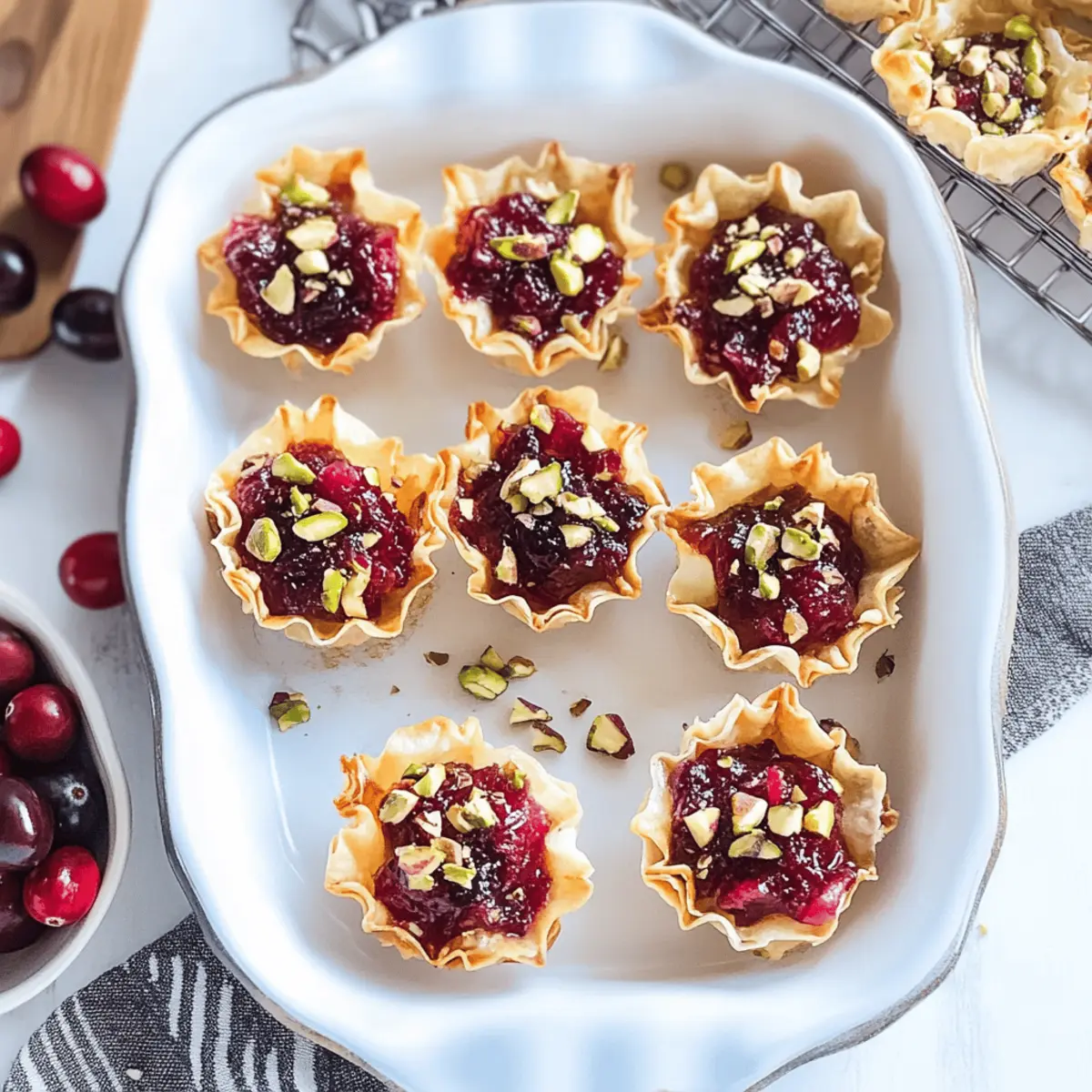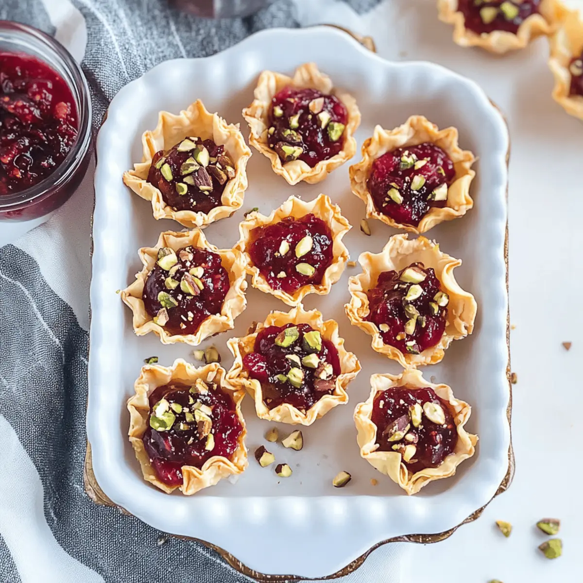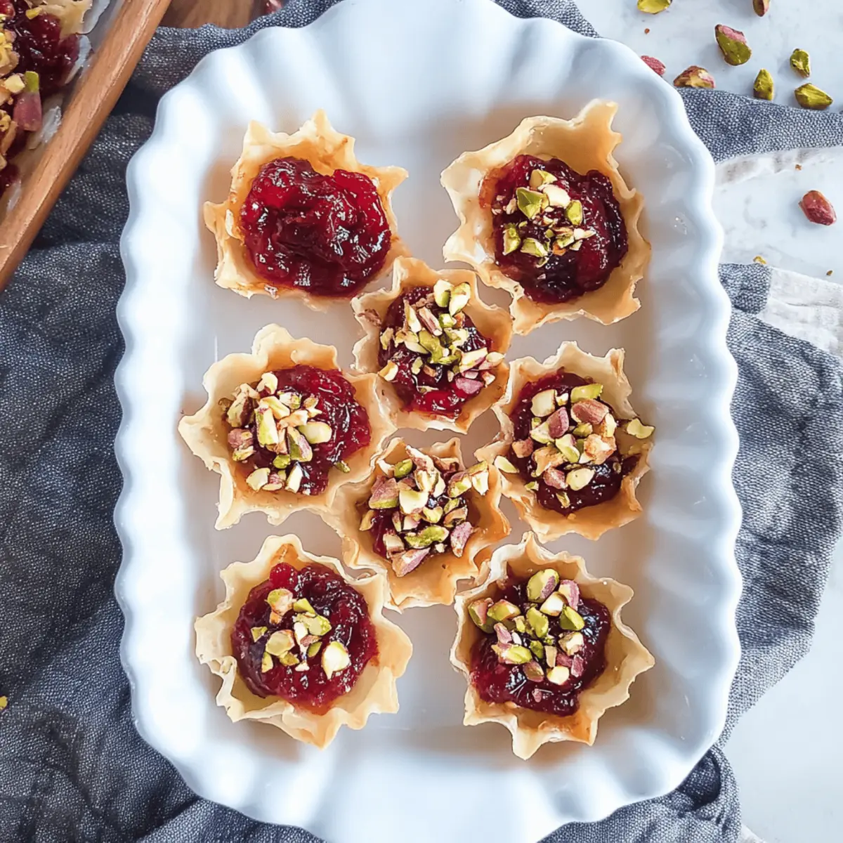Finish off your Cranberry Brie Bites by sprinkling the chopped pistachios over the cranberry sauce. This nutty topping will add a satisfying crunch and enhance the overall flavor profile. The combination of textures—from the crispy shells to the gooey brie and crunchy pistachios—creates an unforgettable appetizer experience.