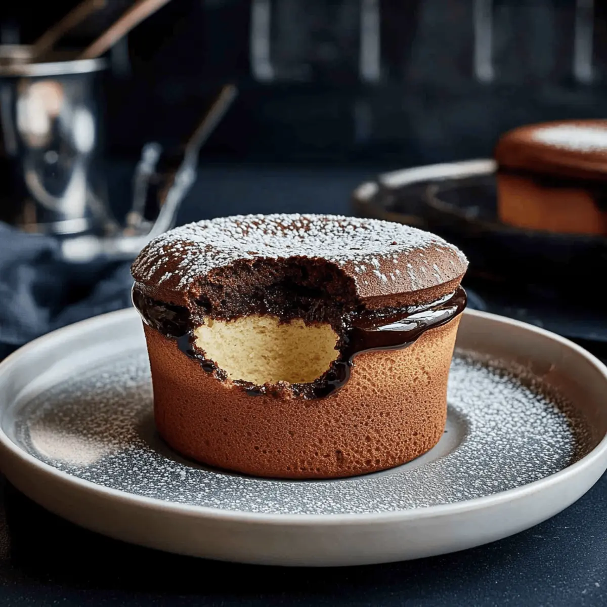 As I stood in my kitchen, the aroma of dark chocolate melting gently embraced me, stirring memories of romantic dinners and festive gatherings. Yes, the art of crafting a Dark Chocolate and Grand Marnier Soufflé Recipe is more than just cooking; it’s about creating an experience that astonishes and delights. This elegant yet surprisingly simple dessert promises to elevate any occasion—be it an intimate dinner or a celebratory feast—while being gluten-free and accommodating various dietary needs. With its ethereal texture, this soufflé not only wins hearts but also satisfies cravings for something truly special. Curious about how to master the perfect soufflé and impress your friends and family? Let’s dive into the delicious details! Why is this soufflé a must-try? Elevated dining experience: This Dark Chocolate and Grand Marnier Soufflé offers a touch of elegance that transforms any gathering into a special occasion. Simple but impressive: Despite its sophisticated facade, this recipe is easy to whip up, making it perfect for novice chefs and seasoned ones alike. Versatile flavors: Whether you stick with the classic chocolate and orange combination or experiment with variations like raspberry, the flavor possibilities are endless! Gluten-free option: This soufflé can be enjoyed by those with gluten sensitivities, making it a fantastic choice for diverse gatherings. Crowd-pleaser: The light, airy texture combined with rich chocolate creates a dessert everyone will love, just like my Decadent Dark Chocolate or Chocolate Chip Crumble recipes! With an allure that captivates, this soufflé is bound to become a beloved addition to your dessert repertoire. Dark Chocolate and Grand Marnier Soufflé Ingredients Get ready to create magic with this Dark Chocolate and Grand Marnier Soufflé Recipe! For the Soufflé Dark Chocolate – Use high-quality chocolate for a rich, decadent flavor that forms the base of this dessert. Grand Marnier – This orange liqueur adds a lovely citrus brightness to the chocolate; substitutes like orange extract can be used for a non-alcoholic version. Sugar – Sweetens the soufflé while achieving a perfect texture; remember to reserve some for dusting the ramekins. Eggs – They provide structure and ensure a fluffy texture; whip egg whites to stiff peaks for the best results. Salt – Just a pinch enhances the chocolate flavor, balancing the sweetness beautifully. Optional Toppings Powdered Sugar – Dust over the soufflé for a touch of elegance and sweetness before serving. Whipped Cream or Ice Cream – Perfect companions that add a creamy richness alongside the light soufflé. Fresh Berries – For a pop of color and flavor contrast, adding berries makes for a lovely presentation. Feel free to explore the charming flavors of this delightful Dark Chocolate and Grand Marnier Soufflé—perfect for any occasion! Step‑by‑Step Instructions for Dark Chocolate and Grand Marnier Soufflé Recipe Step 1: Prep Ramekins Begin by preheating your oven to 375°F (190°C). While the oven heats, prepare four 4-ounce ramekins by thoroughly buttering them and dusting the insides with granulated sugar. This helps the soufflés rise beautifully and gives them a lovely crust. Set the ramekins aside on a baking sheet for easy transfer to the oven later. Step 2: Melt Chocolate In a heatproof bowl, gently melt 6 ounces of high-quality dark chocolate. You can do this using a double boiler or microwaving in 20-second intervals, stirring in between, until smooth and glossy. Be sure the chocolate is completely melted to ensure a rich flavor in your Dark Chocolate and Grand Marnier Soufflé. Step 3: Mix Egg Yolks In a medium mixing bowl, whisk together 3 large egg yolks and half of the sugar (about 2-3 tablespoons). Beat until the mixture is pale, creamy, and slightly thickened, taking about 3 minutes. This step is crucial as it adds richness and structure to your soufflé, so make sure to achieve the desired consistency. Step 4: Combine Ingredients Once the chocolate has melted and cooled slightly, fold it gently into the egg yolk mixture. Then, add 2 tablespoons of Grand Marnier and mix until beautifully combined. The warm chocolate will help create a smooth batter, infusing the soufflé with luxurious flavor as you prepare the Dark Chocolate and Grand Marnier Soufflé. Step 5: Whip Egg Whites In a clean, dry bowl, add 3 large egg whites along with a pinch of salt. Using an electric mixer, whip the egg whites until they form stiff peaks, which should take about 4-5 minutes. This step is key to achieving the light, airy texture that makes the soufflé so delightful, so be careful not to overbeat. Step 6: Fold Wisely Gently fold the whipped egg whites into the chocolate mixture in three batches. Use a spatula to incorporate the whites without deflating them, ensuring that air is maintained in the batter. This careful folding is vital in crafting the light and airy texture of your Dark Chocolate and Grand Marnier Soufflé. Step 7: Bake Spoon the soufflé batter into the prepared ramekins, filling them about three-quarters full. Place the ramekins on the baking sheet and bake in the preheated oven for approximately 12-15 minutes, or until puffed and set with a slightly soft center. Avoid opening the oven door during baking to prevent collapsing. Step 8: Serve Once baked, remove the soufflés from the oven and dust with powdered sugar for an elegant finish. Serve your Dark Chocolate and Grand Marnier Soufflé warm, ideally paired with a dollop of whipped cream or a scoop of ice cream on the side to elevate this indulgent dessert experience. Expert Tips for Dark Chocolate and Grand Marnier Soufflé Perfect Egg Whites: Ensure all equipment is grease-free for whipping egg whites to achieve proper stiff peaks; this prevents your soufflé from collapsing. Gentle Folding: Carefully fold the egg whites into the chocolate mixture in increments to maintain airiness; this is crucial for