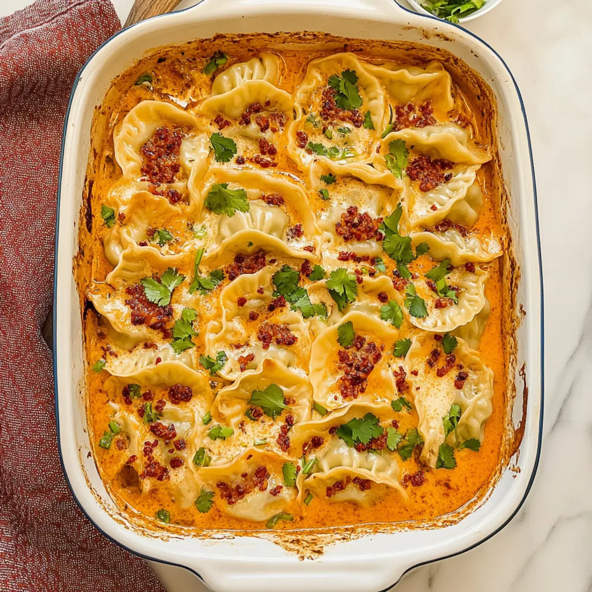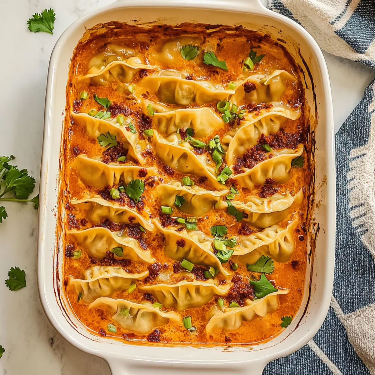 Flipping through my favorite cooking magazine, I stumbled upon a dish that promised to transform the mundane into something magical—this Trader Joe’s Dumpling Bake. Picture this: savory dumplings soaking in a rich, creamy red curry-coconut sauce, all bubbling together in one delightful baking dish. With just three minutes of prep time, it’s a quick and easy one-dish meal that’s both vegetarian-friendly and utterly comforting. The sharpness of garlic pairs beautifully with the smoothness of coconut milk, while a touch of teriyaki adds a hint of excitement. It’s perfect for those cozy nights in when all you want is something delicious without the fuss. Curious about how to whip up this viral sensation in your kitchen? Let’s dive in! Why is this recipe a must-try? Simplicity at its finest: With just three minutes of prep time and one baking dish, this Dumpling Bake takes the stress out of dinner. Heavenly flavors: The rich combination of red curry and coconut milk creates a sauce that’s packed with flavor, elevating your dumplings to new heights. Crowd-pleasing delight: Perfect for impressing family and friends, this dish will be the star of any gathering, promising satisfied smiles. Versatile ingredients: Easily swap the potstickers for your favorite frozen dumplings or even homemade versions for a personal touch. For a refreshing side, consider pairing it with a Cucumber Salad for a balanced meal. Make-ahead magic: Assemble ahead of time and save it in the fridge, ready to pop into the oven when hunger strikes. It’s the ultimate solution for busy weeknights! Dumpling Bake Ingredients • Here’s everything you need to create this delightful dish! For the Dumplings Frozen Gyoza-Style Potstickers – The heart of the recipe; the frozen variety from Trader Joe’s offers the best taste and texture. Crunchy Chili Onion or Chili Crisp – Adds delightful texture and heat; optional for those who enjoy a kick. For the Creamy Sauce Garlic – Fresh garlic brings depth and richness; minced garlic can be used if you’re in a pinch. Soyaki or Teriyaki Sauce – A perfect sweet and savory complement; if unavailable, standard teriyaki sauce works just fine. Thai-Style Red Curry Sauce – Essential for that vibrant flavor; choose a prepared simmer sauce for ease. Coconut Milk – Gives creaminess and balances spices beautifully; substitute with a mix of 3/4 cup milk and 1/4 cup yogurt for a similar effect. Water – Thins the sauce to a perfect consistency, ensuring even coating over the dumplings. For Garnish Fresh Cilantro – Adds a burst of freshness and color; feel free to leave out if you’re not a fan. Green Onions – Offers flavor and crunch; optional based on personal preference. With these ingredients in hand, you’re ready to whip up a cozy, comforting Dumpling Bake that your friends and family will rave about! Step‑by‑Step Instructions for Dumpling Bake Step 1: Preheat Your Oven Begin by preheating your oven to 400°F (200°C). This vital step ensures that your Dumpling Bake cooks evenly and thoroughly. While the oven heats up, gather all your ingredients, including frozen gyoza-style potstickers and the creamy red curry sauce. This preparation will streamline your cooking process, making the next steps feel effortless. Step 2: Whisk the Sauce Together In a medium bowl, combine the soyaki sauce, Thai-style red curry sauce, coconut milk, minced garlic, and water. Whisk them together until the mixture is smooth and well-integrated. This creamy sauce is the star of your Dumpling Bake, so take a moment to ensure it’s blended beautifully, creating a fragrant base for your soon-to-be delectable meal. Step 3: Arrange the Potstickers Grab a suitable baking dish and arrange approximately 20 frozen potstickers at the bottom. Make sure they are spaced evenly to allow for thorough cooking and saucing. Once arranged, pour the whisked sauce evenly over the potstickers, ensuring each is generously coated. This will result in tender dumplings enveloped in rich, flavorful goodness as they bake. Step 4: Cover and Bake Cover the baking dish tightly with aluminum foil, sealing in moisture and heat. Place it in the preheated oven and bake for 30 to 40 minutes. Keep an eye out for the dumplings to become tender and the sauce to bubble invitingly. This is where the aromas begin to fill your kitchen, creating excitement for the meal ahead. Step 5: Garnish and Serve Carefully remove the baking dish from the oven—be cautious of the hot steam when lifting the foil. Now it’s time to add lovely finishing touches! Garnish your Dumpling Bake with fresh cilantro, sliced green onions, and a spoonful of crunchy chili crisp for an extra flavor boost. Serve warm and enjoy a delightful meal that satisfies your cravings! Expert Tips for Dumpling Bake • Spacing Matters: Ensure potstickers are evenly spaced in the baking dish for uniform cooking. Crowding can lead to unevenly heated dumplings. • Sauce Consistency: Avoid using sweetened coconut cream; it can change the dish’s flavor profile, making it overly sweet instead of savory. • Fresh Ingredients: Use fresh garlic for the best flavor. If using minced garlic, remember that a little goes a long way—too much can overpower the dish. • Cover for Moisture: Always cover the baking dish tightly with foil during baking. This keeps your dumplings moist and tender, preventing them from drying out. • Garnish with Love: Fresh garnishes like cilantro and green onions add not only flavor but also make your Dumpling Bake visually appealing. Don’t skip this step! What to Serve with Viral Trader Joe’s Dumpling Bake Cozy up and complete your meal with delightful sides and drinks that beautifully enhance the bold flavors of this comforting dish. Steamed Edamame: A lightly salted plate of these nutritious green nuggets adds a pop of freshness and texture, perfect for contrast. Cucumber Salad: Crisp and refreshing, this salad cuts through the richn