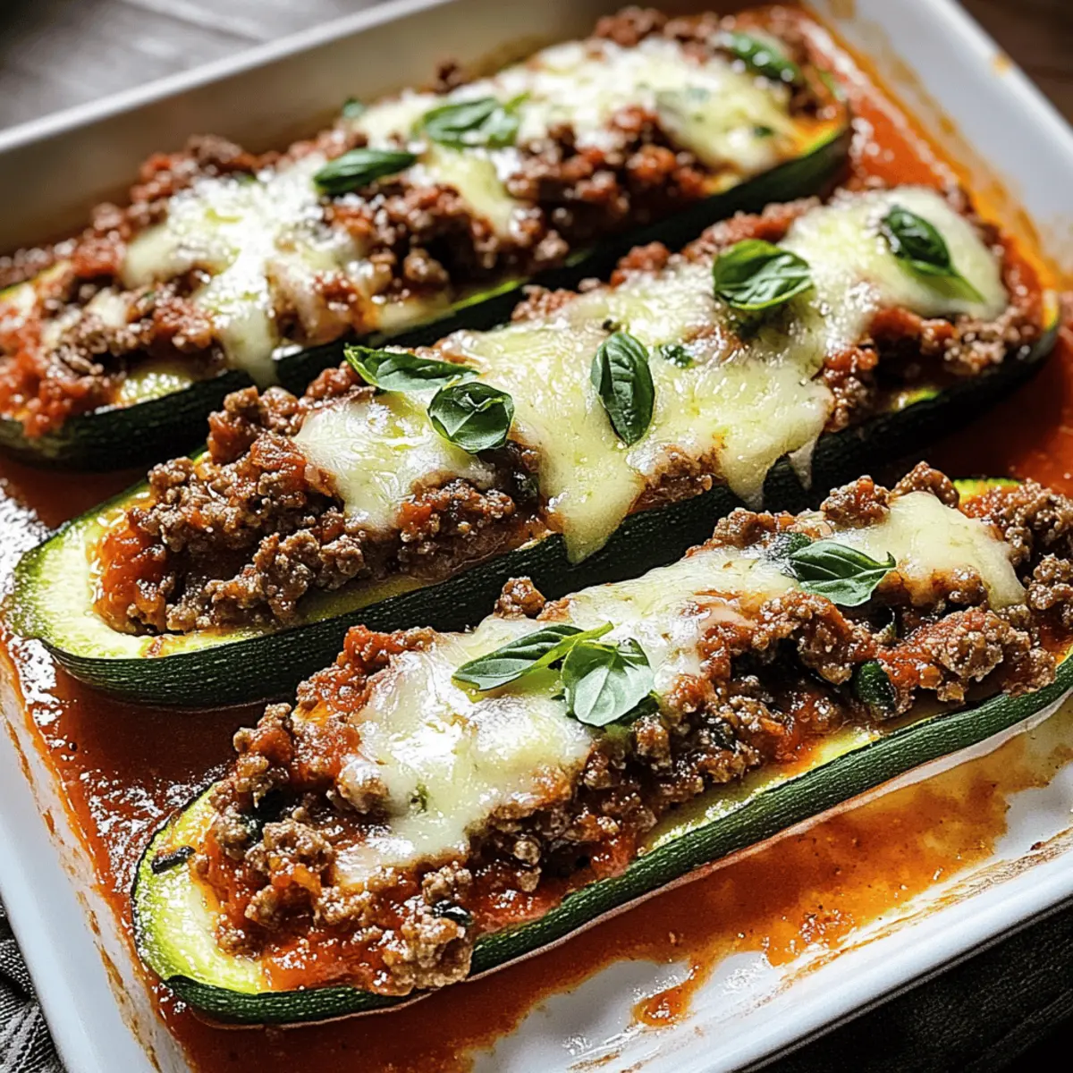 As I was rummaging through my fridge one evening, a delightful surprise caught my eye: a couple of fresh zucchinis just waiting to be transformed. That’s when inspiration hit, leading me to create these Ground Beef Zucchini Boats. Imagine sinking your teeth into tender zucchini filled with seasoned ground beef, zesty marinara sauce, and a generous layer of melted cheese. Not only is this dish a healthy, low-carb dinner option, but it’s also quick to prepare and perfect for impressing family or friends. Whether you’re an experienced chef or just starting in the kitchen, these zucchini boats offer a fantastic way to enjoy Italian flavors without the guilt. Curious how to make your own savory creations? Let’s dive in! Why Choose Ground Beef Zucchini Boats? Flavor Explosion: Each bite offers a savory delight with the perfect combination of seasoned ground beef, tangy marinara, and gooey cheese that will make your taste buds sing. Healthy Alternative: These boats are a low-carb option, allowing you to indulge in comfort food without the extra calories. Quick and Easy: Ideal for busy weeknights, this recipe comes together in under an hour, making it perfect for both cooking novices and seasoned chefs alike. Versatile Ingredients: You can easily customize the fillings with different proteins or vegetables, ensuring there’s always something new to create. Pair your zucchini boats with a fresh salad or some crunchy Baked Zucchini Chips to round out the meal! Family-Friendly: Loved by kids and adults, these zucchini boats are a fun way to get everyone involved in the kitchen—making cooking a family activity. Don’t miss out on these creative and hearty dinners that are sure to impress your guests and satisfy your cravings! Ground Beef Zucchini Boats Ingredients For the Zucchini Boats • Zucchini – Use medium zucchinis for sturdy, perfect-sized boats. • Ground Beef – The rich protein source; can substitute with ground turkey or plant-based meat for a lighter option. For the Filling • Onion – Finely chopped for sweetness and depth in your mixture. • Garlic – Minced for an extra pop of flavor. • Marinara Sauce – Adds moisture and classic Italian taste; essential for juicy filling. • Italian Seasoning – This aromatic blend kicks up the flavor profile. • Salt – Essential for seasoning; adjust to your taste. • Black Pepper – Adds a gentle warmth; season according to your preference. For the Toppings • Mozzarella Cheese – Melts beautifully for that gooey topping texture; opt for dairy-free if desired. • Parmesan Cheese – Rich and savory; a delightful finishing touch. For Cooking • Olive Oil – Used for sautéing the veggies; can swap for vegetable oil if you prefer. For Garnish • Fresh Basil – Optional, but it adds a lovely fresh burst and color to your dish. These Ground Beef Zucchini Boats are not only satisfying but also a fantastic way to enjoy healthy Italian flavors with ease! Step‑by‑Step Instructions for Ground Beef Zucchini Boats Step 1: Preheat the Oven Begin by preheating your oven to 375°F (190°C). This ensures it’s hot enough to cook the zucchini boats evenly, allowing the flavors to meld beautifully. While the oven heats, prepare your zucchinis, creating a delicious and healthy foundation for your filling. Step 2: Prepare the Zucchini Carefully wash each zucchini, trimming off the ends before slicing them in half lengthwise. With a spoon, scoop out the seeds and some flesh from the center to create deep boats, reserving the removed flesh for filling later. This step is crucial to ensure your Ground Beef Zucchini Boats are hearty and flavorful. Step 3: Sauté the Aromatics In a large skillet, heat a tablespoon of olive oil over medium heat. Add the finely chopped onion and minced garlic, sautéing for about 3-4 minutes until they are translucent and fragrant. This aromatic base will enhance the flavor of the ground beef mixture as you continue to cook. Step 4: Cook the Ground Beef Next, add the ground beef to the skillet, breaking it apart with a spatula. Cook for about 5-7 minutes until the meat is browned and fully cooked, stirring occasionally to ensure it’s evenly browned. Drain any excess fat, leaving you with a rich and hearty filling for the zucchini boats. Step 5: Mix in the Filling Ingredients Stir the reserved zucchini flesh, marinara sauce, Italian seasoning, salt, and black pepper into the skillet with the ground beef. Allow this mixture to simmer for about 5 minutes, letting all the flavors blend together beautifully. The filling should be thick and aromatic, perfect for stuffing into the zucchini boats. Step 6: Fill the Zucchini Boats Once your filling is ready, carefully spoon it into each zucchini half, pressing down slightly to pack the mixture in well. Arrange the filled boats on a baking dish, ensuring they’re stable and ready for the cheese topping. This step is essential for a satisfying bite in your Ground Beef Zucchini Boats. Step 7: Add the Cheese Toppings Generously sprinkle the mozzarella cheese over the stuffed zucchini boats, followed by the Parmesan cheese if desired. The cheese will melt and create a deliciously gooey topping as the zucchini bakes, enhancing the flavors and adding a comforting element to your dish. Step 8: Bake the Zucchini Boats Cover the baking dish loosely with aluminum foil, then place it in the preheated oven. Bake for 25 minutes, allowing the zucchini to soften while the filling heats through. The foil will help retain moisture, ensuring your Ground Beef Zucchini Boats stay juicy and flavorful. Step 9: Finish Baking for a Golden Top After 25 minutes, carefully remove the foil and return the zucchini boats to the oven. Bake for an additional 10 minutes until the cheese is bubbly and golden brown. Keep an eye on them to achieve that perfect, crispy cheese crust that everyone loves. Step 10: Garnish and Serve Once done, remove the zucchini boats from the oven and allow the