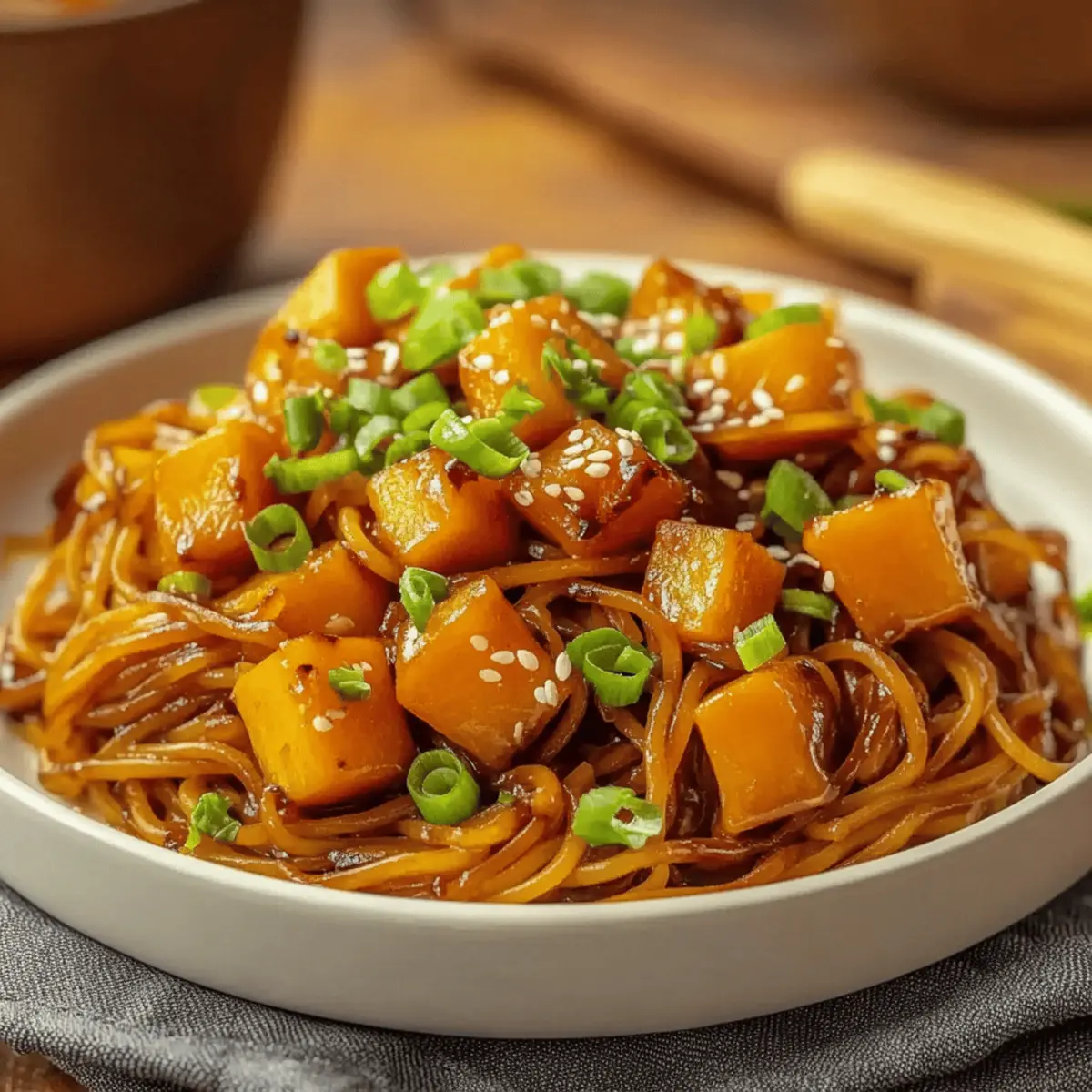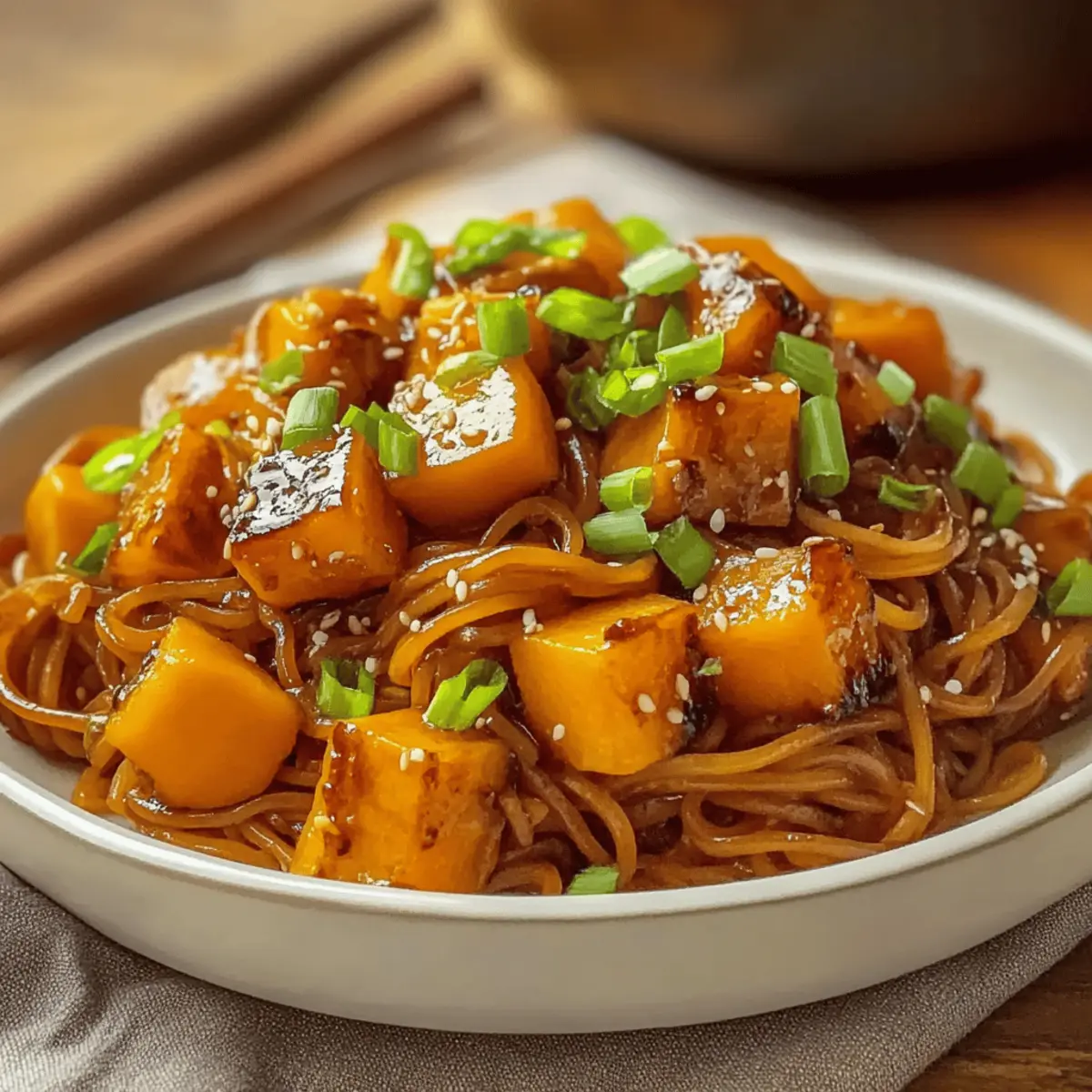 Savor the essence of autumn with this Harvest Noodle Stir-Fry, packed with butternut squash and a glossy sauce.