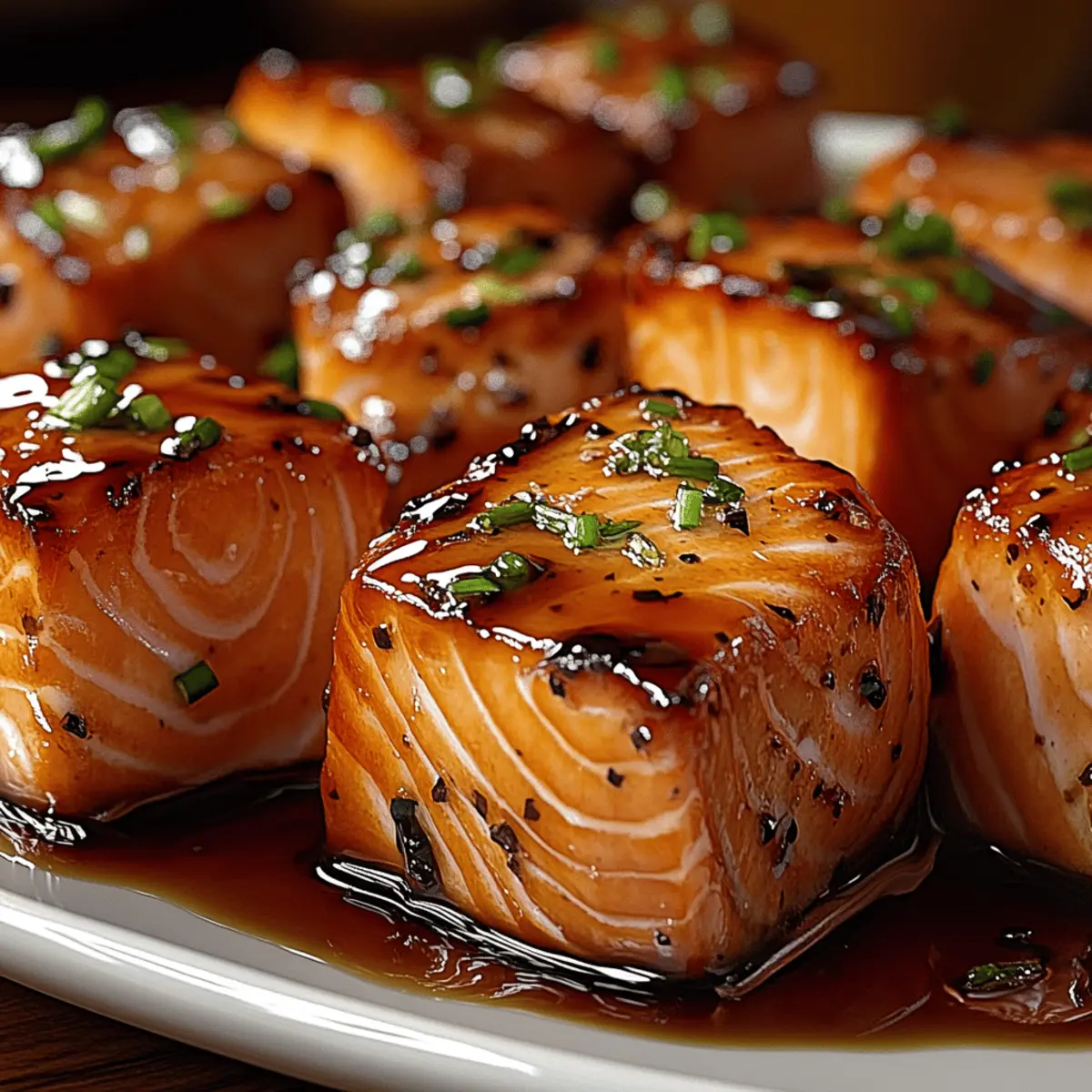 Remove the skillet from heat, and carefully transfer the glazed salmon bites to a serving plate. Optionally, garnish with finely chopped green onions or a sprinkle of toasted sesame seeds for an added crunch and a pop of color. Serve warm with your favorite side dish, like jasmine rice or a crisp salad to make your meal complete.