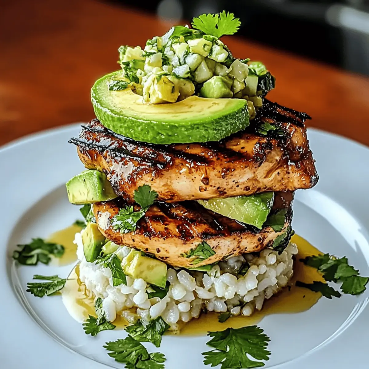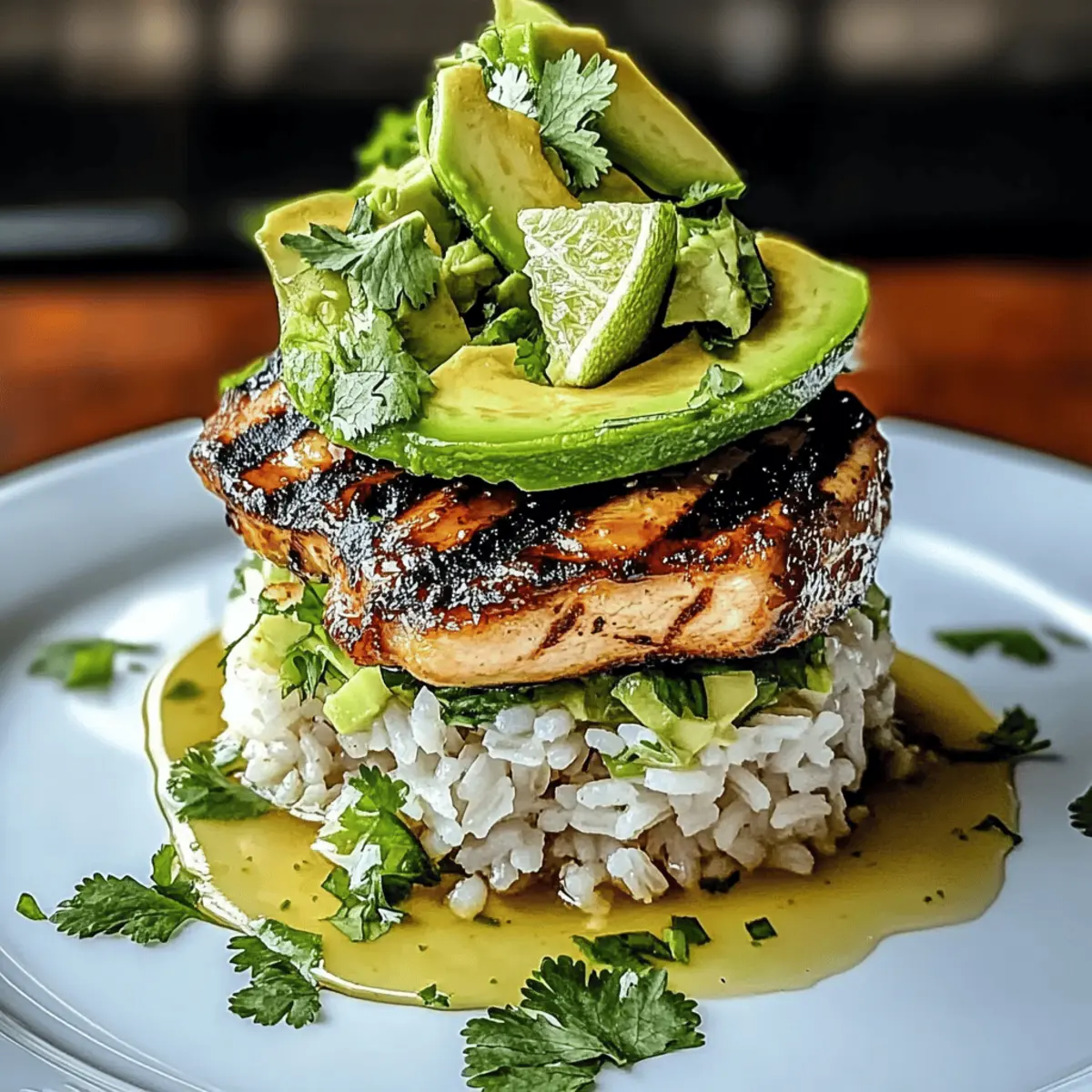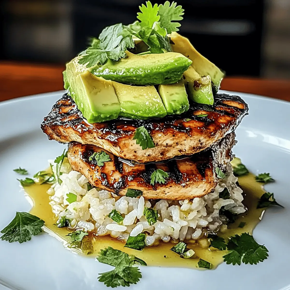 As I prepped dinner the other night, the enticing aroma of honey and lime began to swirl through my kitchen, instantly lifting my spirits. My latest creation, the Honey Lime Chicken & Avocado Rice Stack, is a glorious way to turn dinner into a colorful culinary adventure without spending hours in the kitchen. This cheerful dish not only promises a quick preparation time, perfect for our bustling lives, but it’s also brimming with nutritious ingredients that elevate a simple meal to something extraordinary. Picture succulent grilled chicken nestled onto fluffy jasmine rice, topped with a creamy avocado mix that’ll have you coming back for seconds. Curious to discover how you can customize this stack to suit your taste? Let’s dive in! How will you customize this stack? Customization, this recipe is a blank canvas for your creativity! With options like swapping chicken for tofu or tempeh, you can effortlessly cater to your dietary preferences. Flavor-packed, the honey-lime marinade infuses chicken with a sweet-tangy kick that pairs beautifully with creamy avocado. Quick prep time makes it a lifesaver on busy weeknights, taking only about an hour from start to finish. Nutritious ingredients like jasmine rice and fresh veggies combine to create a balanced meal for the whole family. If you’re looking for a different spin, try incorporating flavors from my Coconut Lime Rice or a twist with Avocado Chicken Salad. Savor Honey Lime Chicken & Avocado Rice Stack Ingredients • Explore the delightful elements that make this dish a meal to remember! For the Chicken Marinade Chicken Breasts – A lean protein source; replace with boneless, skinless thighs for more flavor. Honey – Adds natural sweetness; agave syrup is a great vegan substitution. Lime Juice – Infuses brightness; always use freshly squeezed for the best taste. Lime Zest – Enhances the lime flavor with aromatic oils. Garlic – Fresh minced garlic provides depth; avoid garlic powder for superior flavor. Ground Cumin – Contributes warmth and earthiness to the marinade. Salt & Pepper – Essential for balancing and enhancing flavors. For the Rice Base Jasmine Rice – A fragrant and fluffy base for the stack; swap for cauliflower rice to lower carbs. Chicken Broth – Adds depth of flavor when cooking rice; remember to choose gluten-free if needed. For the Avocado Mixture Avocados – Freshly diced for creaminess; essential for that rich texture. Red Onion – Provides a crisp bite; you can omit it based on your preference. Cilantro – Fresh herb for garnish; use as desired for an added pop of flavor. Olive Oil – Binds the ingredients in the avocado mix, adding richness. For Serving Lime Wedges – Squeeze fresh lime over the dish for an extra zesty kick. This vibrant Honey Lime Chicken & Avocado Rice Stack is not only customizable but also perfectly nutritious, ensuring your family enjoys every bite! Step‑by‑Step Instructions for Savor Honey Lime Chicken & Avocado Rice Stack Step 1: Prepare Marinade In a medium bowl, whisk together 1/4 cup honey, the juice and zest of two limes, three minced garlic cloves, 1 teaspoon ground cumin, and salt and pepper to taste. This sweet and tangy marinade is the heart of the Savor Honey Lime Chicken & Avocado Rice Stack. Ensure all ingredients are well combined to infuse the chicken with flavor. Step 2: Marinate Chicken Place 4 boneless chicken breasts into a resealable plastic bag. Pour the prepared marinade over the chicken, ensuring it’s fully coated. Seal the bag, removing as much air as possible, and refrigerate for at least 30 minutes, or up to 2 hours for a deeper flavor. This step enhances the chicken’s juiciness and flavor profile. Step 3: Cook Rice While the chicken is marinating, rinse 1 cup of jasmine rice under cold running water until the water runs clear. Combine the rinsed rice with 2 cups of chicken broth in a saucepan, adding a pinch of salt. Bring to a boil over medium-high heat, then reduce the heat to low, cover, and simmer for about 15 minutes, or until the rice is tender and fluffy. Step 4: Grill Chicken Preheat your grill to medium-high heat, about 400°F (200°C). Remove the chicken from the marinade, letting excess drip off. Grill the chicken for 6 to 7 minutes per side, or until it reaches an internal temperature of 165°F (75°C) and has beautiful grill marks. Rest the chicken for 5 minutes before slicing to retain its juiciness. Step 5: Make Avocado Mixture In a medium bowl, combine 2 diced avocados, 1/4 cup finely chopped red onion, 2 tablespoons of chopped cilantro, and 1 tablespoon of olive oil. Season with a pinch of salt and pepper. Gently toss all the ingredients together, taking care not to mash the avocados. This creamy mixture will complement the warm chicken beautifully. Step 6: Assemble To serve the Savor Honey Lime Chicken & Avocado Rice Stack, start with a generous layer of the fluffy jasmine rice on each plate. Top with sliced grilled chicken, followed by a spoonful of the avocado mixture. For a burst of freshness, add lime wedges on the side, inviting everyone to squeeze additional lime juice over their stack for zesty flavor. Expert Tips for Honey Lime Chicken Marinate Longer: For an even richer flavor, let the chicken marinate for up to 2 hours. This allows the honey lime infusion to fully permeate and tenderize the meat. Check Doneness: Always use a meat thermometer to ensure your grilled chicken reaches an internal temperature of 165°F (75°C). This prevents undercooking and ensures a safe meal. Prevent Avocado Browning: To keep your creamy avocado mixture looking fresh, add lime juice immediately after cutting. It not only flavors but prevents oxidation, keeping the vibrant green color. Heat the Grill: Make sure your grill is preheated to medium-high before placing the chicken. This helps achieve those beautiful grill marks and locks in the chicken’s juices for tender meat. Customize Your Rice: Feel free to substitute jasmine 