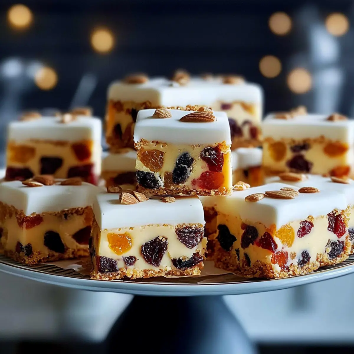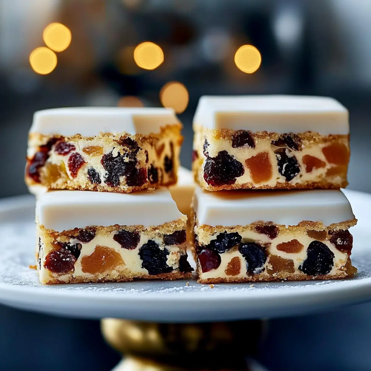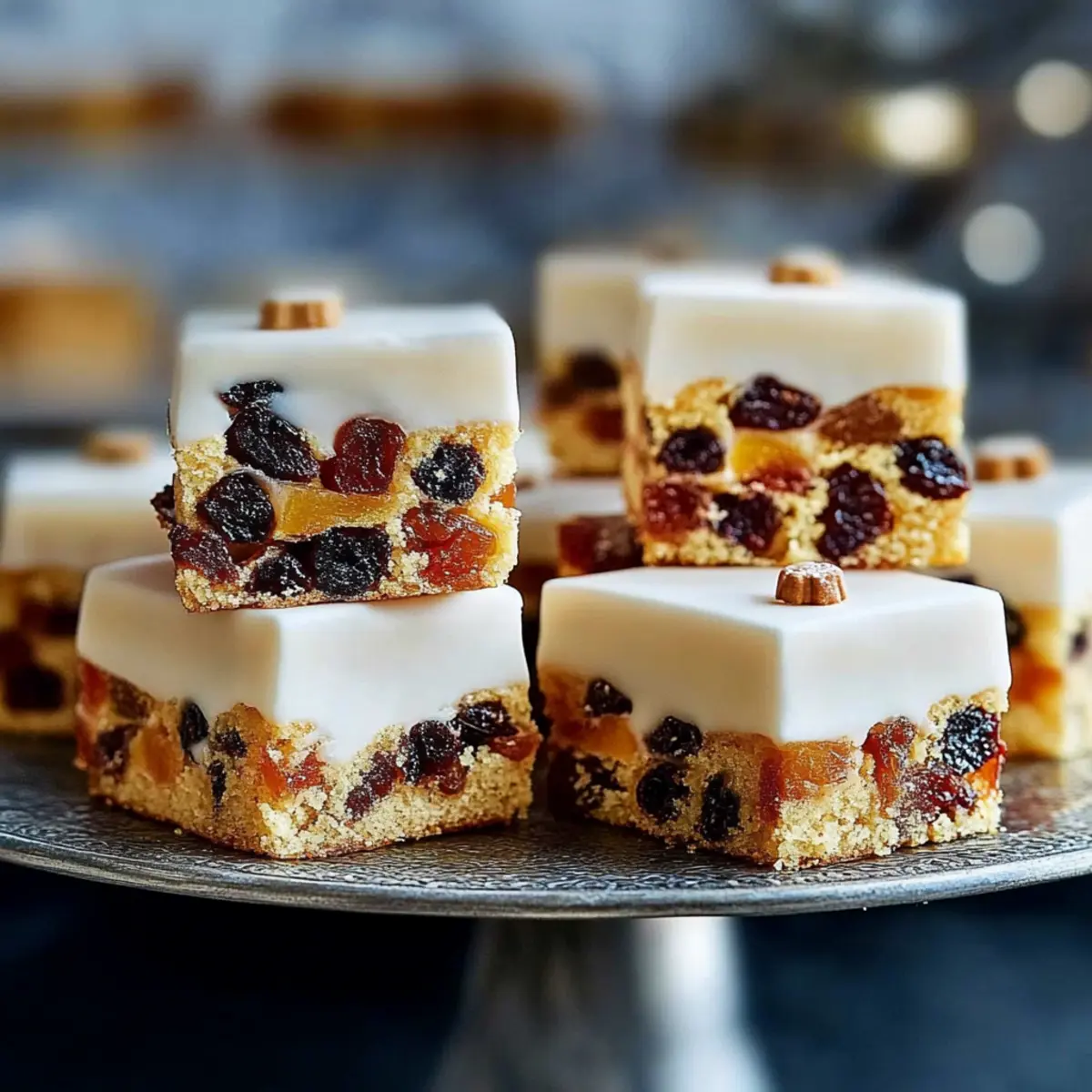 There’s something magical about the scent of baked goods wafting through the kitchen during the holiday season. As I prepared to whip up Mary Berry’s Christmas Cake Bites, the nostalgia of festive gatherings filled my heart. These delightful treats are a true celebration of flavor, combining fruity sweetness and a rich, comforting texture that makes them perfect for any holiday table. The best part? They’re quick to make and even easier to share, turning a simple baking session into a joyful experience for everyone. Whether you’re hosting a cozy gathering or looking for the ideal accompaniment to your cup of tea, these little bites are sure to win hearts. Curious how to bring a piece of Mary Berry’s Christmas spirit to your kitchen? Let’s dive into this enchanting recipe together! Why will you love Mary Berry’s cakes? Unmatched Flavor: Each bite is filled with the delightful taste of fruits, creating a perfect harmony of sweetness and tartness. Quick Preparation: These bites come together in a snap, letting you enjoy more time with your loved ones. Versatile Treat: With easy swaps, personalize them to your taste, whether you prefer figs instead of apricots or a hint of spice from ginger. Crowd-Pleasing Delight: Perfect for festive gatherings, these cakes charm guests of all ages and make your holiday table shine. Store & Share: Make them ahead, store them easily, and enjoy them fresh or frozen, making holiday baking a breeze. Looking to add even more festive flair to your table? Pair these bites with a warm cup of coffee alongside Coffee Cheesecake Indulge or some delightful Crispy Crab Rangoon Bites. Mary Berry’s Christmas Cake Bites Ingredients Get ready to bake a festive favorite! For the Cake Mixture 175g (6 oz) apricots, chopped – Adds sweetness and chewy texture; can substitute with other dried fruits like figs or dates for variety. 3 tablespoons brandy – Enhances flavors with warmth; for a non-alcoholic option, use apple juice. 175g (6 oz) butter, softened – Provides richness and structure; opt for unsalted butter for better control over the salt level. 175g (6 oz) light brown sugar – Brings sweetness and moisture; granulated sugar can be used for a lighter flavor. 4 eggs, beaten – Acts as a binding agent; for an egg-free alternative, consider flaxseed or chia eggs. 175g (6 oz) plain flour – Forms the base of the cake; use a gluten-free flour blend if needed. 225g (8 oz) raisins – Offers sweetness and chewiness; chopped nuts can be a delightful alternative for added crunch. 225g (8 oz) currants – Contributes flavor similar to raisins; sultanas work as a suitable substitute. 225g (8 oz) cherries, quartered, washed, and dried – Provides a lovely tartness; dried cranberries make a great swap. For the Decoration A little apricot jam, warmed – Used for glazing and adding sweetness; feel free to swap with any fruit jam or syrup you prefer. 500g (1 lb 2 oz) ready-prepared almond paste (Golden Marzipan) – Adds a sweet layer on top; fondant can substitute, or skip it for a simpler finish. 500g (1 lb 2 oz) ready-to-roll white icing – Ensures a smooth, sweet finish; omit for a rustic appearance if desired. These Mary Berry’s Christmas Cake Bites are sure to be a hit, so let your creativity flow as you prepare this festive delight! Step‑by‑Step Instructions for Mary Berry’s Christmas Cake Bites Step 1: Preheat Oven Begin by preheating your oven to 160ºC (Fan 140ºC/Gas 3). While the oven heats, grease and line a 30 × 20 cm (12 × 8 in) traybake tin with baking paper. This preparation ensures that your Mary Berry’s Christmas Cake Bites will bake evenly and release effortlessly after baking. Step 2: Soak Apricots Take the chopped apricots and place them in a small bowl. Pour the brandy over the apricots, ensuring they are fully covered. Allow them to soak overnight or for at least a few hours until they absorb the liquid. This step adds wonderful flavor and moisture to your Christmas cake bites. Step 3: Prepare Batter In a mixing bowl, cream the softened butter and light brown sugar with an electric whisk until smooth and fluffy, usually around 2-3 minutes. You want the mixture to turn pale and airy. This process helps to incorporate air for a lighter texture in your Mary Berry’s Christmas Cake Bites. Step 4: Combine Ingredients Once your batter is ready, gently fold in the soaked apricots along with the beaten eggs, plain flour, raisins, currants, and quartered cherries. Use a spatula to mix until all ingredients are well combined, ensuring not to overmix. The rich colors and textures will merge beautifully, creating a flavorful batter. Step 5: Bake Spoon the cake mixture into the prepared traybake tin and smooth the top with the back of a spoon. Bake in the preheated oven for 1 to 1¼ hours, or until the cake is golden brown and a skewer inserted in the center comes out clean. Keep an eye on it, as the aroma will guide you to its doneness. Step 6: Cool Once baked, remove the tin from the oven and allow the cake to cool in the tin for about 10-15 minutes. This resting time helps firm up the cake before transferring it. Gently lift it from the tin using the baking paper and place it on a wire rack to cool completely. Step 7: Decorate After the cake is fully cooled, brush the top with warmed apricot jam for shine and sweetness. Layer it with the prepared almond paste, smoothing it out, then brush with additional jam for an even finish. Finally, cover the cake with ready-to-roll white icing, creating a smooth exterior for your Christmas Cake Bites. Step 8: Slice and Serve Once decorated, it’s time to slice your Mary Berry’s Christmas Cake Bites into squares. For elegant presentation, consider cutting them into smaller canapés. Serve these delightful treats alongside a cup of tea or coffee, making them the perfect festive indulgence for your gatherings. What to Serve with Mary Berry’s Christmas Cake Bites Elevate your festive gatherings 
