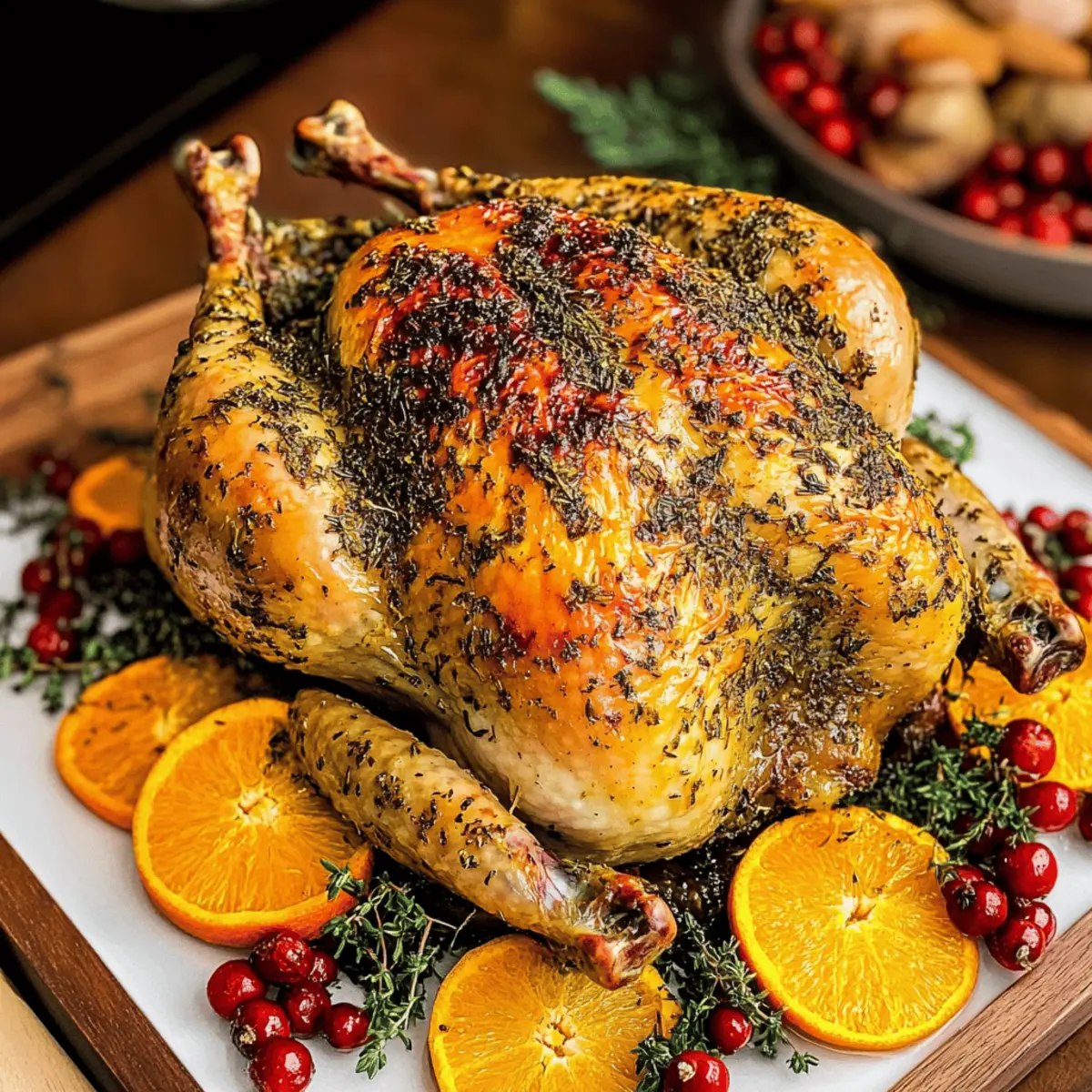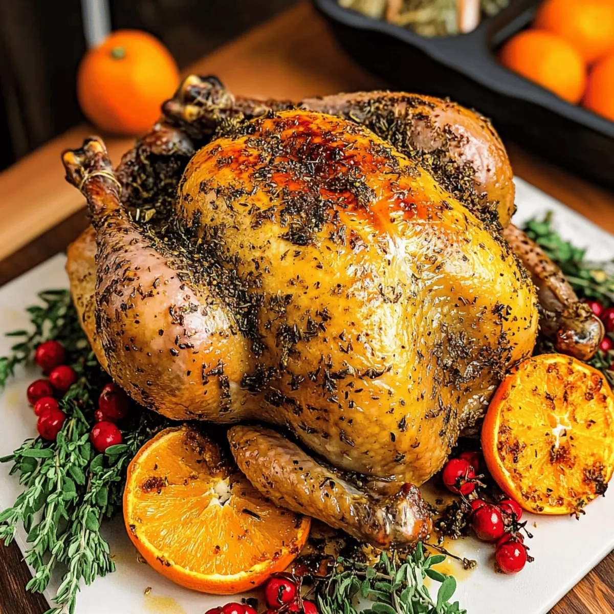 As the fragrant aroma of Orange Herb Roasted Chicken wafts through your kitchen, you’ll feel the warmth of a cozy gathering envelop you. This recipe transforms an ordinary dinner into a festive celebration, combining zesty oranges, luscious pomegranate, and an array of fresh herbs for a truly tantalizing experience. Not only is this dish impressively easy to prepare, but it also promises to be the star of your table, making it perfect for those holiday feasts or special Sunday dinners. The crispy skin and juicy, herb-infused meat create a dish that isn’t just about nourishment; it’s about creating memories. Ready to elevate your culinary game with a dish that tells a story at the dinner table? Why is This Chicken Recipe Special? Simplicity at its finest: With just a few steps, you can create a gourmet dish that impresses without overwhelming. Zesty Flavor explosion: The combination of oranges and pomegranate provides a refreshing burst that elevates the classic roast chicken. Versatile enjoyment: Perfect for festive gatherings or cozy family dinners, it suits every occasion and pleases a crowd – a real showstopper! Crispy, Juicy Perfection: Achieve a golden, crispy skin embracing moist, tender meat infused with harmonious herbs. Make-Ahead Friendly: Plan your meal effortlessly by prepping ahead, so you can relax and enjoy time with loved ones—just like with my Avocado Chicken Salad Roll-Ups or Chicken Schnitzel Herb. Orange Herb Roasted Chicken Ingredients • Whip up a zesty flavor sensation! For the Herb Butter Unsalted Butter – Adds richness and moisture to the chicken; substitute with olive oil for a lighter option. Maple Syrup – Provides sweetness and caramelization during roasting; honey or agave syrup can be used as alternatives. Pomegranate Juice – Enhances flavor with tartness; can replace with cranberry or orange juice if needed. Orange Juice – Fresh citrus flavor brightens the dish; fresh or bottled juice can both work. Orange Zest – Adds concentrated orange flavor; always use fresh and wash the fruit before zesting. Fresh Thyme – Introduces an earthy herb note; dried thyme may be substituted (use less as it is more potent). Fresh Rosemary – Offers a fragrant touch to the chicken; dried rosemary can be used if fresh is not available. Fresh Sage – Complements the other herbs with its unique flavor; dried sage can also work. For the Chicken Whole Chicken (6.5 pounds) – Main protein; keep giblets removed for proper cooking. Half Orange (quartered) – Used for stuffing the chicken to enhance flavor during roasting. Head of Garlic – Adds depth; exposing the cloves helps infuse flavor. Salt and Black Pepper – Essential for seasoning the chicken’s skin and inside the cavity. Get ready to create a show-stopping Orange Herb Roasted Chicken that will not only delight your taste buds but also become a new favorite for festive dinners! Step‑by‑Step Instructions for Orange Herb Roasted Chicken Step 1: Preheat Oven Begin by preheating your oven to 425°F (220°C). This ensures a hot environment that will quickly crisp the skin of your Orange Herb Roasted Chicken. While the oven heats up, gather your ingredient prep area to streamline the cooking process. Step 2: Prepare Herb Butter In a mixing bowl, combine softened unsalted butter, maple syrup, pomegranate juice, orange juice, and orange zest. Add in the fresh thyme, rosemary, and sage, then blend everything until well mixed. This fragrant herb butter will infuse your chicken with delightful citrus and herbal flavors as it roasts. Step 3: Prep Chicken Take your whole chicken and pat it dry with paper towels to remove excess moisture. Carefully create pockets underneath the skin with your fingers, allowing you to rub in the flavorful herb butter mixture both under the skin and on top. This step is vital for achieving juicy, flavor-packed meat in your Orange Herb Roasted Chicken. Step 4: Stuff Chicken Fill the cavity of the chicken with the quartered orange, the head of garlic (with cloves exposed), and any remaining fresh herbs. Ensure everything fits snugly, then tie the legs with kitchen twine and tuck the wing tips under the bird to secure the stuffing and promote even roasting. Step 5: Season and Cook Generously season the skin of the chicken with salt and freshly ground black pepper, ensuring every side is well-covered. Place the chicken in a sturdy roasting pan breast side up and roast uncovered for 30 minutes at 425°F. During this time, you should start to see the skin golden and crispy. Step 6: Lower Temperature After 30 minutes, reduce the oven temperature to 350°F (175°C). Baste the chicken with reserved herb butter to keep it moist, then continue roasting for an additional 1.5 to 2 hours. Check for doneness by using an instant-read thermometer; the internal temperature should read 165°F (74°C) when fully cooked. Step 7: Rest and Serve Once the chicken has reached the correct temperature, carefully remove it from the oven and let it rest for 30 minutes. This allows the juices to redistribute throughout the meat. After resting, remove the stuffing ingredients from the cavity, carve the chicken, and serve your beautiful Orange Herb Roasted Chicken to impress family and friends. Make Ahead Options Preparing your Orange Herb Roasted Chicken in advance is a game changer for busy weeknights! You can marinate the whole chicken with the herb butter mixture, cover it tightly, and refrigerate for up to 24 hours—this allows the flavors to meld beautifully. Additionally, you can stuff the chicken with the quartered orange and garlic ahead of time, ensuring it’s ready to pop in the oven when you’re set to cook. Just remember to let the chicken sit at room temperature for about 30 minutes before roasting to ensure even cooking. When you’re ready to serve, simply roast according to the instructions, and you’ll have a stunning and flavorful centerpiece that will wow your guests! How to Store a