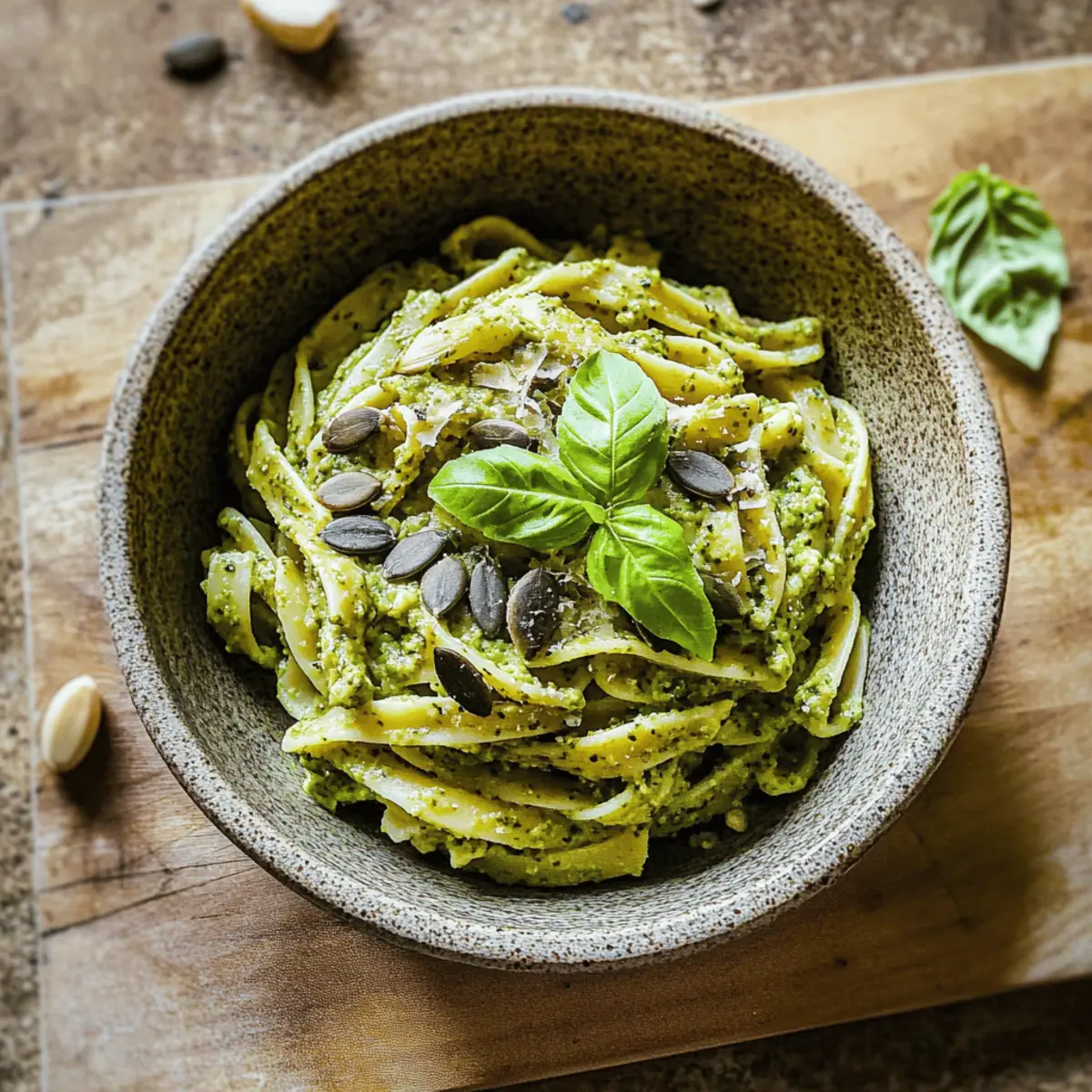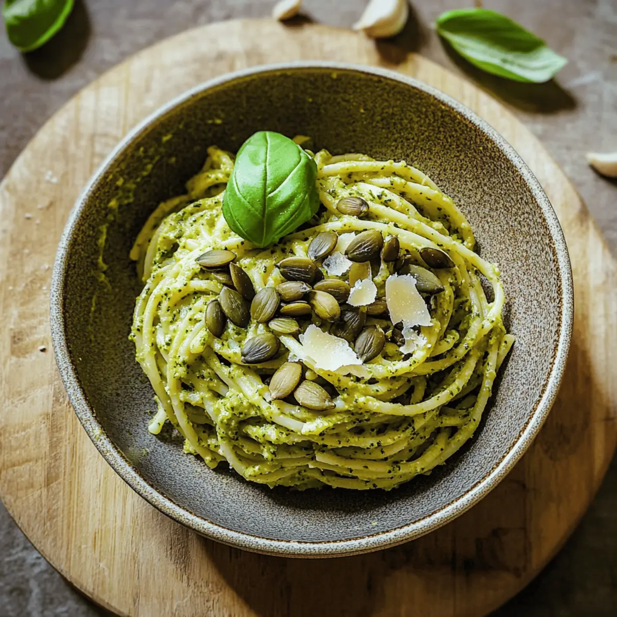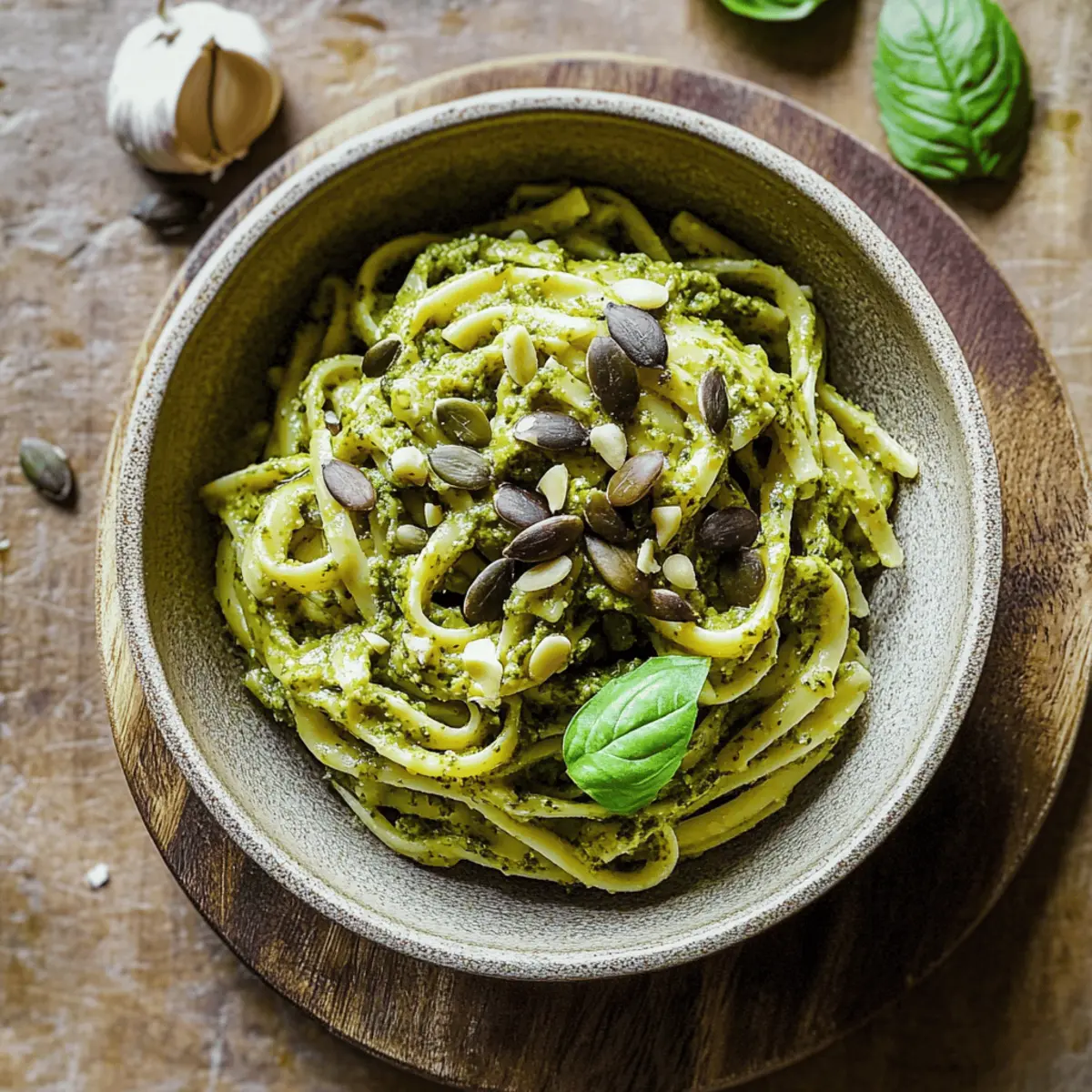 The first time I tasted pumpkin seed pesto, it felt like savoring a well-kept secret—earthy, creamy, and unexpectedly delightful. This Nut-Free Pumpkin Seed Pesto Pasta with Garlic & Seeds transforms humble ingredients into a vibrant masterpiece that’s perfect for a weeknight dinner or as a refreshing cold pasta salad. Not only is this dish satisfying, but it also caters to vegan and nut-free diets, making it a great option for those looking to avoid common allergens without sacrificing flavor. Imagine tossing warm pasta with a garlicky sauce that’s just as good loved by both kids and adults alike. Curious how this simple twist on a classic can become a favorite in your kitchen? Let’s dive into the recipe! Why is Pumpkin Seed Pesto Pasta Amazing? Versatile enough to please any palate, this dish shines whether served warm or as a chilled salad. Nut-Free and Vegan, it caters to various dietary needs without compromising taste. Fresh Ingredients combined with a garlicky kick create a rich and satisfying flavor profile. Plus, it’s a great canvas to incorporate seasonal veggies or different pasta types. For more delightful flavor, check out Garlic Shrimp Pasta or add it as a side with your favorite roasted vegetables for an unforgettable meal! Pumpkin Seed Pesto Pasta Ingredients • Discover the perfect blend of flavors and textures with these fresh ingredients! For the Pesto Pumpkin Seeds – Provide earthy richness and creamy texture; substitute with sunflower seeds if needed. Garlic – Adds aromatic depth; roast for a milder, sweeter flavor. Basil – Fresh herb that brightens the dish; or substitute with spinach for a unique twist. Lemon Juice – Infuses acidity for balance; apple cider vinegar works in a pinch. Nutritional Yeast – Offers a cheesy flavor while keeping it vegan; parmesan cheese is another option for traditionalists. Olive Oil – Adds richness and helps emulsify the pesto; avocado oil is a good alternative. For the Pasta Pasta – The base of the dish; choose gluten-free options made from rice or legumes, if preferred. Elevate your Pumpkin Seed Pesto Pasta with Garlic & Seeds experience with these carefully selected ingredients that promise a flavor boost in every bite! Step‑by‑Step Instructions for Pumpkin Seed Pesto Pasta with Garlic & Seeds Step 1: Toast the Seeds In a dry skillet over medium heat, add the pumpkin seeds and toast them for 3-4 minutes. You’ll know they’re ready when they turn golden brown and start to pop, releasing a delightful aroma. Be sure to stir occasionally to prevent burning. Reserve a few toasted seeds to use as a garnish later. Step 2: Blend the Pesto In a food processor, combine the toasted pumpkin seeds, garlic, fresh basil, lemon juice, nutritional yeast (or parmesan), salt, and pepper. Blend the ingredients until they form a chunky paste, then slowly drizzle in olive oil while processing until the mixture is creamy and well combined. Taste and adjust the seasoning as needed for your perfect Pumpkin Seed Pesto. Step 3: Cook the Pasta Bring a large pot of salted water to a boil. Once boiling, add your choice of pasta and cook according to the package instructions, typically around 8-10 minutes for al dente. Before draining, reserve about ½ cup of the pasta water to help adjust the sauce later. Drain the pasta and set it aside. Step 4: Combine Return the cooked pasta to the pot over low heat. Pour in the homemade pumpkin seed pesto, along with the reserved pasta water, stirring well to ensure every strand is coated. The heat will help emulsify the pesto, creating a luscious sauce that clings to your pasta. Cook for an additional 2-3 minutes, allowing the flavors to meld beautifully. Step 5: Serve Plate your delightful Pumpkin Seed Pesto Pasta with Garlic & Seeds, drizzling with extra olive oil for added richness. Garnish with the reserved toasted seeds, a sprinkle of chili flakes for some heat, and a touch of lemon zest for brightness. Enjoy it warm as a cozy meal or let it cool to serve as a refreshing pasta salad. What to Serve with Pumpkin Seed Pesto Pasta with Garlic & Seeds The vibrant flavors of this dish deserve some delightful companions to truly shine at your table. Crusty Garlic Bread: Offers a warm, crunchy contrast that complements the creamy pasta perfectly. Roasted Seasonal Vegetables: Add color and nutrition; their caramelized sweetness pairs beautifully with the earthy pesto. Think zucchini, bell peppers, or asparagus. Simple Green Salad: Refreshing mixed greens with a lemon vinaigrette adds a bright note, balancing the richness of the pasta. Grilled Lemon Herb Tofu: For protein lovers, this adds a zesty, savory element that enhances the dish’s flavors while keeping it plant-based. Chilled White Wine: A crisp Sauvignon Blanc pairs wonderfully, offering refreshing acidity that cuts through the creaminess of the pesto. Vegan Parmesan Cheese: Sprinkle it on top to boost the cheesy flavor without nuts, enhancing the overall richness of the dish. Lemon Sorbet: End your meal on a light note with this refreshing dessert, cleansing the palate after a satisfyingly rich main course. Stuffed Bell Peppers: Filled with quinoa and veggies, they offer a nutritious side that echoes the flavors of the meal while adding a delightful texture. Herbed Quinoa: This light side dish brings a nutty flavor and fluffy texture, subtly tying back to the pumpkin seed base of the pasta. Homemade Fruit Tart: Sweet and slightly tangy, it contrasts the savory pasta beautifully, making for a perfect finish. Make Ahead Options These Pumpkin Seed Pesto Pasta with Garlic & Seeds are perfect for busy weeknights and meal prep enthusiasts! You can prepare the pumpkin seed pesto up to 3 days in advance and store it in an airtight container in the refrigerator to keep its vibrant flavor intact. The toasted pumpkin seeds can also be made ahead and stored separately for maximum crunch. When you’re ready to enjoy your pasta, simply cook the past