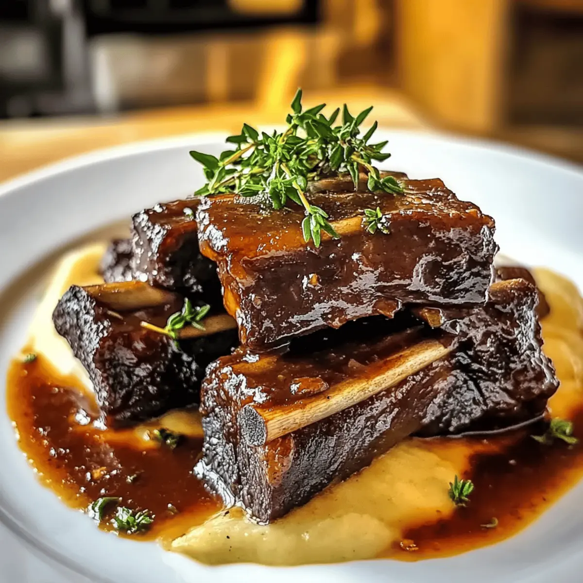 As I wiped the sweat from my brow in the kitchen, the tantalizing aroma of Savory Red Wine Braised Beef Short Ribs filled the air, instantly whisking me to cherished family gatherings. This heavenly dish not only transforms humble beef short ribs into an indulgent masterpiece but also delivers melt-in-your-mouth tenderness that’s perfect for both cozy weeknights and special occasions. With just a few simple steps, you can create a rich, aromatic sauce that lingers in your memory long after the meal is over. Whether you opt for the oven or a slow cooker, this recipe makes comfort food accessible to everyone, inviting you to savor the pleasures of homemade goodness. Curious about how this dish can elevate your dinner table? Let’s dive into the delicious details! Why Choose Red Wine Braised Short Ribs? Tender, melt-in-your-mouth beef short ribs are the highlight of this dish, crafted to perfection with the magic of braising. Rich, aromatic sauce elevates each bite, enhanced by the deep notes of red wine, making it a comforting choice for gatherings. Versatile cooking methods offer you the freedom to choose between slow cooking or oven baking, ensuring ease for any home chef. Great for meal prep, as the flavors deepen overnight, turning leftovers into an even more delicious experience. Perfect for special occasions, this dish dazzles guests and family alike, transforming dinner into a memorable affair. For a delightful pairing, consider serving it with creamy mashed potatoes or enjoy it as a cozy weeknight feast with red wine. Red Wine Braised Beef Short Ribs Ingredients For the Ribs Beef short ribs – Choose well-marbled cuts for that rich, tender texture. Salt and pepper – Essential for seasoning and enhancing the beef’s natural flavors. For the Sauce Red wine – A full-bodied wine like Cabernet Sauvignon brings depth; avoid cooking wine for maximum flavor. Beef broth – Low-sodium options are great for a healthier sauce. Onion (1, chopped) – Provides natural sweetness and is crucial for flavor development. Carrots (2, chopped) – Add sweetness and beautiful color; can substitute with parsnips if desired. Celery (2 stalks, chopped) – Enhances the aromatic profile; can be omitted if not on hand. Tomato paste (2 tbsp) – Thickens the sauce and adds a touch of acidity; can replace with crushed tomatoes. Garlic (4 cloves, minced) – Infuses a rich flavor, but avoid burning while sautéing. For Thickening Flour (2 tbsp) – Acts as a thickening agent; cornstarch works for gluten-free adaptations. For Cooking Olive oil (2 tbsp) – Ideal for searing the ribs; any neutral oil can be used as a substitute. Fresh thyme (3 sprigs) – Adds aromatic depth; substitute with 1 tsp of dried thyme if fresh isn’t available. Bay leaf (1) – Introduces a subtle earthy flavor; remember to remove it before serving. Step‑by‑Step Instructions for Savory Red Wine Braised Beef Short Ribs Step 1: Preheat the Oven Begin by preheating your oven to 325°F (160°C). This will ensure the perfect cooking environment for your Savory Red Wine Braised Beef Short Ribs, allowing the flavors to meld beautifully during the braising process. Step 2: Prepare the Ribs Pat dry the beef short ribs with paper towels to remove excess moisture. Season both sides generously with salt and pepper, enhancing the natural flavors of the meat. This step is crucial for developing a rich crust during searing that adds depth to the final dish. Step 3: Sear the Ribs In a heavy-bottomed Dutch oven, heat 2 tablespoons of olive oil over medium-high heat. Once the oil shimmers, add the short ribs in batches, searing them for about 3-4 minutes on each side until they are beautifully browned. This process creates a flavorful caramelized crust—set the browned ribs aside. Step 4: Sauté the Vegetables Using the same pot, reduce the heat to medium and add onions, carrots, and celery. Sauté the mixture for about 5 minutes until the vegetables soften and the onions become translucent. Stir in the minced garlic, cooking for an additional minute until fragrant without letting it brown. Step 5: Incorporate Tomato Paste and Flour Next, stir in 2 tablespoons of tomato paste and 2 tablespoons of flour, ensuring they blend well into the vegetable mixture. Cook for another 1-2 minutes to eliminate the raw flour taste, which helps to thicken the sauce later in your Red Wine Braised Beef Short Ribs. Step 6: Deglaze the Pot Pour in 1 cup of red wine, scraping the bottom of the pot to release any browned bits stuck to the bottom. Allow the mixture to simmer for about 10 minutes, reducing the wine by half. This will concentrate the flavors and add a depth of richness to the sauce. Step 7: Add Broth and Herbs Once the wine has reduced, stir in 2 cups of beef broth, 3 sprigs of fresh thyme, and 1 bay leaf. Return the seared short ribs to the pot, ensuring they are mostly submerged in the flavorful liquid. This step is crucial as it prepares your dish for a long, hearty braise. Step 8: Braise in the Oven Cover the pot with a tight-fitting lid and place it in the preheated oven. Braise the beef short ribs for 2.5 to 3 hours or until the meat is tender and easily pulls apart with a fork. Your kitchen will be filled with an irresistible aroma as the ribs cook. Step 9: Final Adjustments After braising, carefully remove the pot from the oven. Skim off any excess fat from the surface and taste the sauce. Adjust the seasoning with more salt and pepper if desired. Let the dish rest for about 10 minutes to allow the flavors to meld before serving. Step 10: Serve and Enjoy Spoon the succulent, tender Red Wine Braised Beef Short Ribs onto plates, ensuring a generous amount of sauce accompanies each serving. Pair this comforting dish with creamy mashed potatoes or polenta to soak up the rich sauce, completing this delightful culinary experience. How to Store and Freeze Red Wine Braised Beef Short Ribs Fridge: Store leftovers in an airtight container for up t