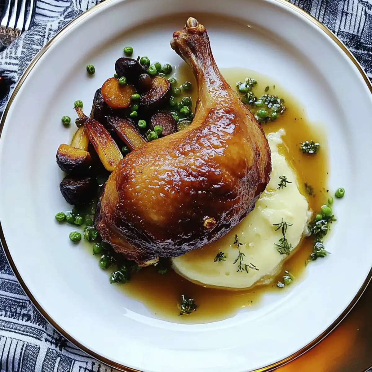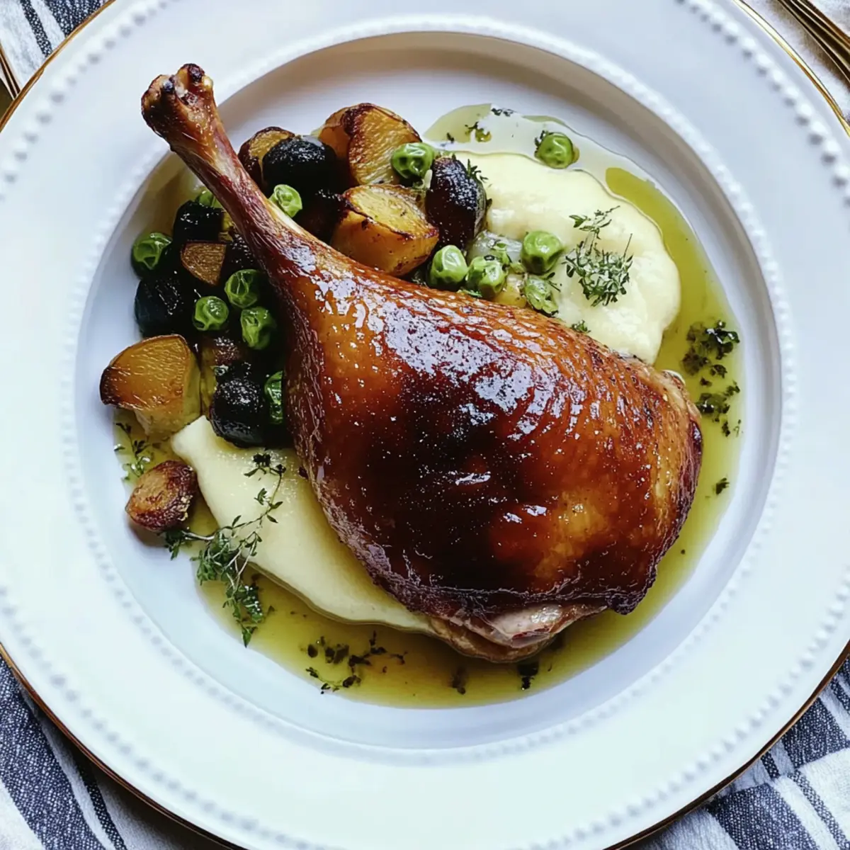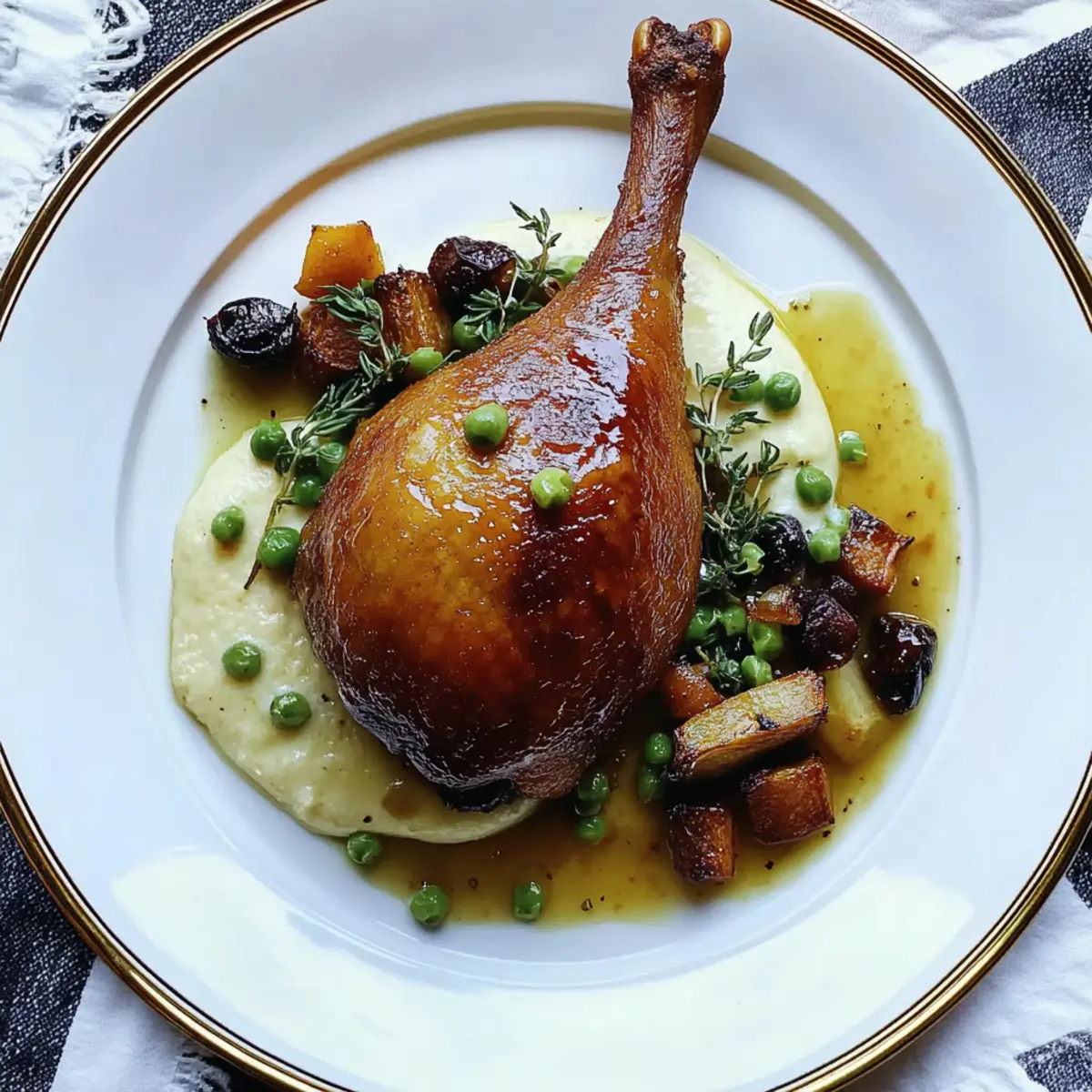 As the rich aroma of slowly roasting duck fills the air, I find myself transported to a quaint French bistro, where every bite of Duck Confit feels like an indulgent embrace. This savory duck confit recipe is a delightful comfort food that elevates your dinner table while transforming any occasion into a culinary celebration. With its luxurious flavors and the promise of tender meat that falls effortlessly from the bone, it’s an instant crowd-pleaser and a wonderful choice for a cozy night in or an impressive dish for guests. Plus, the best part? It requires minimal effort in the kitchen, allowing you to enjoy the process as much as the outcome. Ready to dive into this culinary adventure? Let’s explore the art of making Duck Confit together! Why is Duck Confit a Must-Try? Irresistible Aroma: The moment you start roasting the duck, your kitchen will fill with a rich scent that will make your mouth water. Elevated Comfort Food: This savory Duck Confit is not just a meal; it’s a luxurious experience that transforms any evening into a special occasion. Fall-off-the-Bone Tenderness: Achieving perfectly tender meat is easier than you’d think; simply follow the marination and roasting process for incredible results. Versatile Pairings: Whether you serve it with creamy polenta, a light salad, or roasted vegetables, this dish adapts beautifully to any side you prefer. Minimal Effort: With just a handful of ingredients and a little patience, you’ll impress family and friends without spending hours in the kitchen. Indulge in this classic French comfort food and savor the goodness that Duck Confit brings to your table! Savory Duck Confit Ingredients For the Duck • Duck Legs/Brusts – 4 duck legs or 2 legs and 2 breasts are essential for that melt-in-your-mouth sensation. • Salt – This is key for brining, helping to enhance the duck’s savory flavors. • Ground Black Pepper – A little heat that harmonizes with the richness of the duck. • Garlic – 1 Tbsp minced for warming aromatic depth that elevates the overall taste. For the Aromatics • Onion – 1 large, sliced to add a touch of sweetness during the cooking process. • Oregano – 1/2 tsp lends an earthy flavor; rosemary or sage can be delightful substitutes. • Thyme – 1 tsp for its subtle herbiness; consider adding lemon or orange zest for a refreshing twist. For Cooking • Duck Fat – 2 cups for that luxurious texture; it’s optional but highly recommended for richness. Alternatively, oil can be used for a lighter version. Bring the comforting essence of savory Duck Confit into your kitchen with these simple ingredients! Step‑by‑Step Instructions for Savory Duck Confit Step 1: Score the Duck Skin Using a sharp knife, gently score the skin of each duck leg or breast in a crisscross pattern without cutting into the meat. This helps the fat render and ensures a crispy finish. Aim for shallow cuts about an inch apart. Set aside while you prepare the seasoning. Step 2: Season the Duck Generously rub the scored duck with a mix of salt, pepper, oregano, thyme, and minced garlic to enhance the flavor of this savory Duck Confit. Then, layer sliced onion on top of the seasoned duck in a ziplock bag to infuse sweetness. Seal the bag and refrigerate for 24-48 hours for optimal flavor extraction. Step 3: Preheat Oven After marinating, preheat your oven to 375°F (190°C). This initial heat is crucial for getting a head start on rendering the duck fat. As the oven warms, take the duck out of the refrigerator, allowing it to come to room temperature for about 15 minutes. Step 4: Arrange Duck Place the marinated duck legs or breasts into a snug, ovenproof baking dish, ensuring they fit comfortably without being overcrowded. This will promote even cooking and allow the fat to envelop the duck properly during roasting, making for a truly savory Duck Confit. Step 5: Add Duck Fat Carefully pour the duck fat over the arranged duck, until completely submerged. This fat will not only aid in cooking but also create a luxurious texture and flavorful finish. If you’re opting for oil instead, make sure it’s up to the same level as the duck for best results. Step 6: Initial Roast Slide the baking dish into the preheated oven and roast the duck at 375°F for about 30 minutes. You’ll notice the skin beginning to bubble and the kitchen filling with enticing aromas. This ensures initial cooking and moisture retention for the duck before lowering the temperature. Step 7: Lower Temperature After 30 minutes, reduce the oven temperature to 275°F (135°C) and cover the dish tightly with foil. Roast for at least 2 hours, or until the duck is incredibly tender and easily pulls away from the bone. This slow cooking process is key for making savory Duck Confit. Step 8: Crisp the Skin Once the duck is tender, remove the foil and increase the oven temperature back to 375°F. Roast for an additional 20-30 minutes, or until the skin is beautifully crisp and golden brown. Keep a close eye on the duck during this stage to avoid burning the skin. Step 9: Rest and Serve After roasting, take the baking dish from the oven and let the duck rest for 10-15 minutes. This allows the juices to redistribute, ensuring each bite of your savory Duck Confit is tender and flavorful. Serve with your choice of sides for a delightful gourmet experience. Make Ahead Options These savory Duck Confit preparations are perfect for busy weeknights or hosting gatherings without the last-minute stress! You can season the duck with the garlic, salt, pepper, oregano, and thyme and refrigerate it up to 48 hours in advance for maximum flavor infusion. To maintain quality, ensure the duck is placed in an airtight bag with sliced onion, keeping it chilled until you’re ready to cook. When you’re ready to serve, simply follow the roasting instructions starting from preheating the oven. This way, your duck will turn out just as delicious with minimal effort—ideal for comfortin