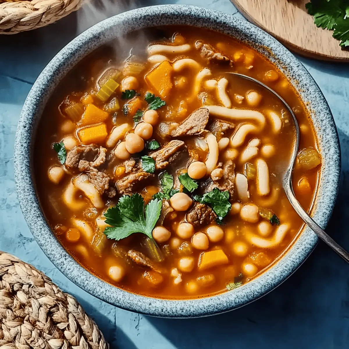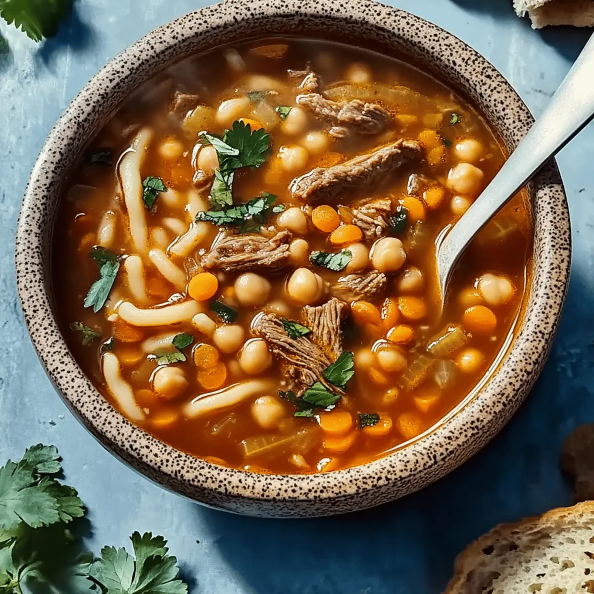 Savory Harira Soup is a nourishing dish filled with tender beef, hearty lentils, and vibrant vegetables, perfect for cozy gatherings.