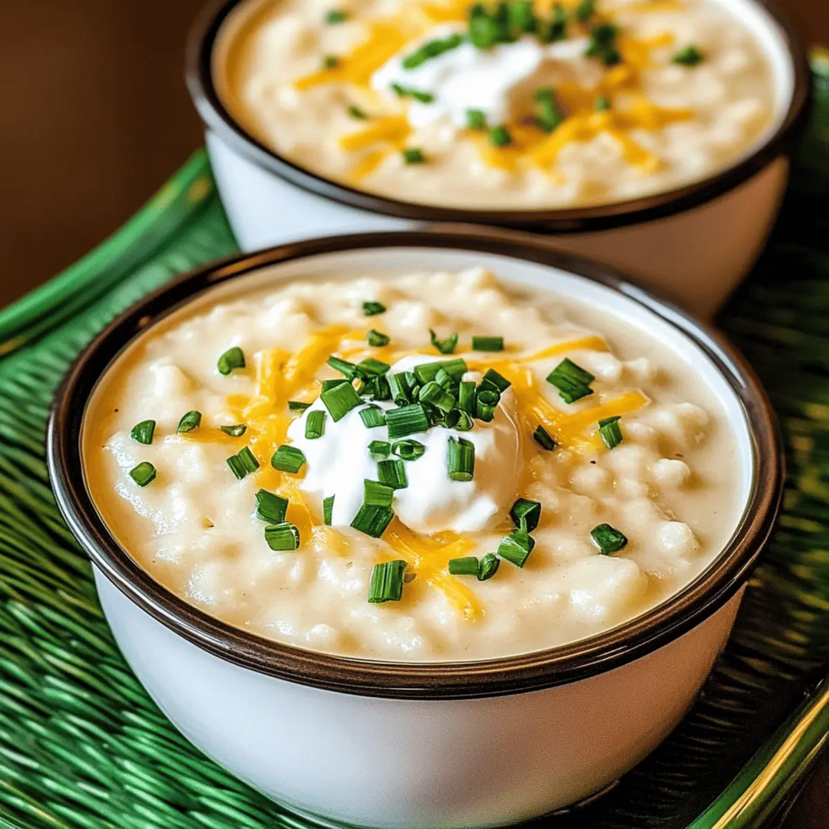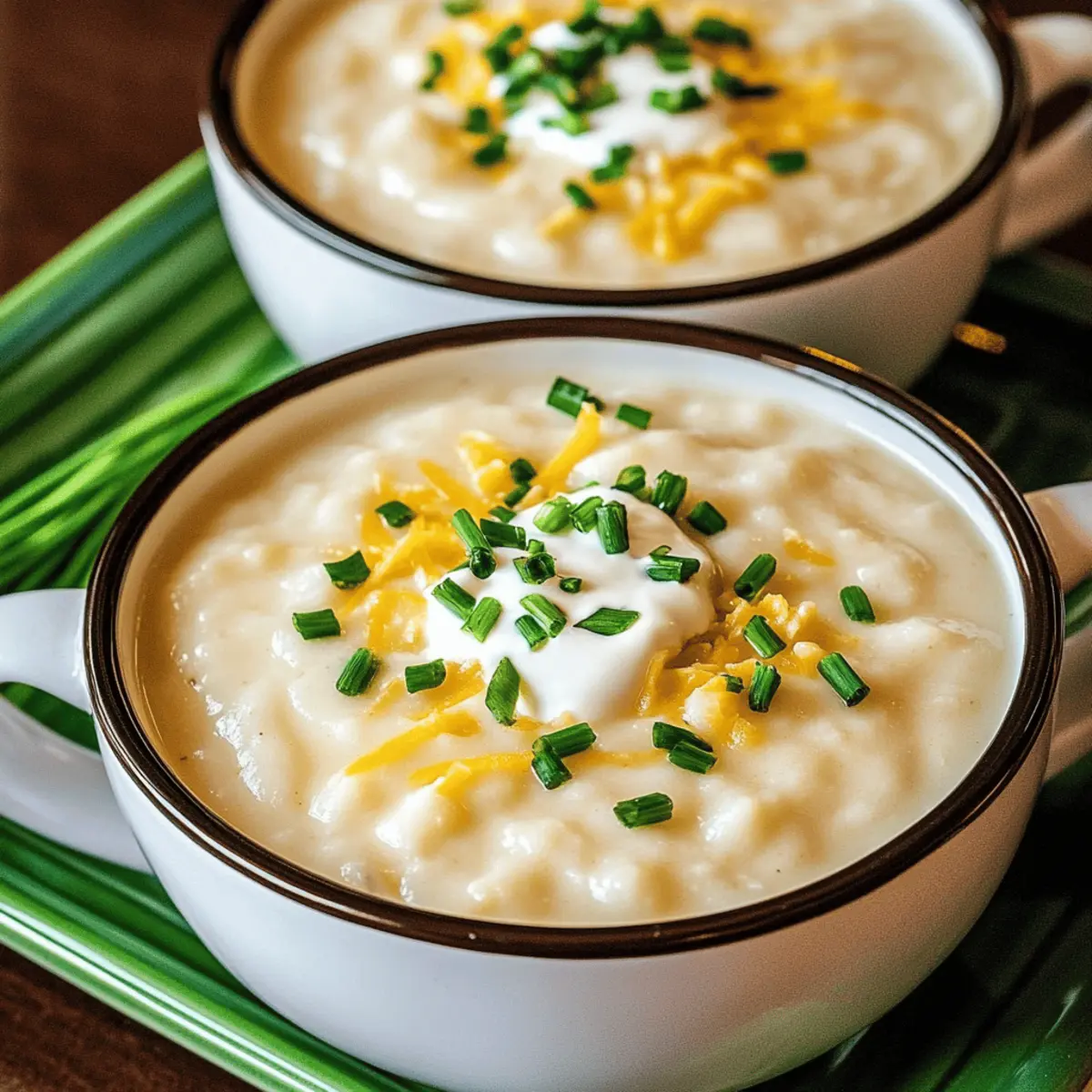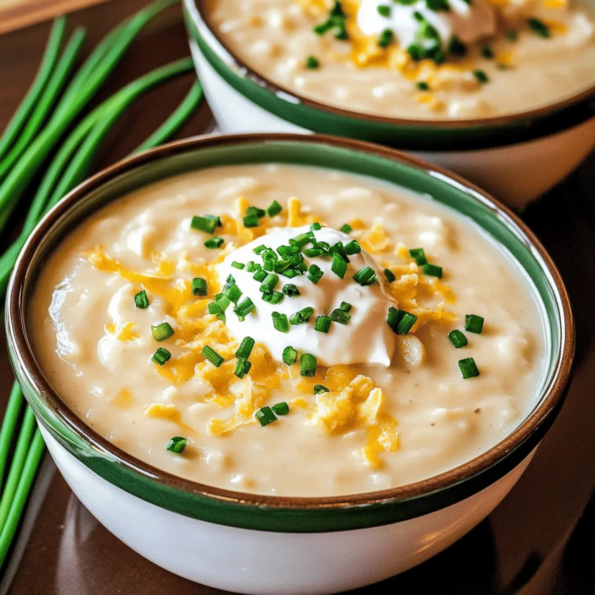 As I settled into my cozy kitchen one rainy afternoon, the thought of a warm, hearty bowl of Slow Cooker Potato Soup felt like a comforting hug. This creamy soup is packed with simple, wholesome ingredients, making it an effortless choice for busy weeknights or lazy weekends. Not only does it offer a satisfying meal for the whole family, but it also fills your home with that inviting aroma that begs everyone to gather around the table. Plus, it’s a fantastic canvas for delicious variations; whether you add crispy bacon or vibrant veggies, the possibilities are endless! Are you ready to embrace the warmth of this delightful dish? Why is this potato soup a must-try? Simplicity at Its Best: This recipe shines with easy preparation, allowing you to set it and forget it while the slow cooker works its magic. Creamy Comfort: The rich combination of potatoes, cheese, and cream creates a bowl of velvety goodness that wraps you in warmth. Versatile Base: Feel free to customize your pot; add bacon for a savory kick or toss in fresh veggies for a nutritious twist! Crowd-Pleasing Flavor: Whether it’s a family dinner or a casual get-together, this soup is guaranteed to impress and satisfy your guests. Hearty Satisfaction: Each spoonful is thick and filling, making it perfect for chilly nights or when you need something uplifting. For even more cozy recipes, don’t miss my Creamy Mushroom Soup Indulge or try the delightful Street Corn Soup for a refreshing twist! Slow Cooker Potato Soup Ingredients • Ready to create the ultimate comfort dish? Here’s what you’ll need! For the Soup Shredded Potatoes – The backbone of the soup, providing a hearty texture; shredded hash browns work best for consistency. Low-Sodium Chicken Broth – Offers a deep, savory flavor that enhances the overall taste; swap with vegetable broth for a vegetarian twist. Salt and Black Pepper – Essential for seasoning and elevating the flavors to perfection; add to taste. Red Pepper Flakes – Gives a gentle kick; adjust the amount based on your spice preference. For Creaminess Whole Milk – Adds rich creaminess; for a lighter option, consider using half-and-half or a non-dairy alternative. Sour Cream – Enhances the soup’s richness and offers a tangy finish; also great for a garnish. Shredded Cheddar Cheese – Melts beautifully into the soup, creating a comforting cheesy flavor; opt for freshly shredded for best results. All-Purpose Flour – Helps thicken the soup to a luscious consistency; gluten-free options include cornstarch or instant mashed potatoes. For Garnishing Chopped Fresh Chives – Brightens the dish visually and adds a mild onion flavor; a delightful finishing touch! Step‑by‑Step Instructions for Creamy Slow Cooker Potato Soup Step 1: Prepare Ingredients In a 6-quart slow cooker, combine your shredded potatoes, low-sodium chicken broth, salt, black pepper, and red pepper flakes. Stir well to ensure the ingredients are evenly distributed. Assemble your slow cooker, and get it ready to fill your kitchen with the comforting aroma of creamy slow cooker potato soup! Step 2: Cook the Soup Cover the slow cooker with its lid and set it to cook on HIGH for 3 hours or LOW for 6 hours, allowing the potatoes to soften and meld with the broth. Keep an eye on the time, and check for tenderness; the potatoes should break apart easily when stirred. Step 3: Whisk Dairy Mixture In a medium mixing bowl, whisk together the whole milk, sour cream, shredded cheddar cheese, and all-purpose flour until the mixture is completely smooth. This creamy blend is the heart of your slow cooker potato soup, ensuring a rich, velvety texture in every spoonful! Step 4: Combine and Cook Again After the initial cooking time, carefully remove the lid from your slow cooker. Pour the whisked dairy mixture into the soup, stirring gently to incorporate it fully. Cover the slow cooker again, and continue cooking on HIGH for an additional 30 minutes or LOW for 1 hour to allow the flavors to meld beautifully. Step 5: Final Adjustments As your creamy slow cooker potato soup nears completion, taste it for seasoning. Adjust salt and black pepper if needed to elevate the flavors further. Once satisfied, give it a good stir, and prepare to ladle the warmth into bowls for serving. Step 6: Serve and Garnish Ladle the luscious soup into bowls, and garnish with additional shredded cheddar cheese, a dollop of sour cream, and a sprinkle of chopped fresh chives if desired. Your creamy slow cooker potato soup is now ready to warm hearts around the table! Slow Cooker Potato Soup Variations Feel free to get creative with your slow cooker potato soup! Each twist will add a unique touch to this cozy dish. Bacon Boost: Add crispy, chopped bacon for a smoky flavor; mix in just before serving for a delightful crunch. It introduces a wonderful depth that complements the creamy base perfectly. Veggie Delight: Toss in sautéed onions, carrots, or celery to enhance nutrition and texture; this adds color and freshness, transforming the soup into a hearty meal. Dairy-Free Option: Substitute whole milk and cheese with coconut milk and vegan cheese for a plant-based version without losing creamy comfort. It’s just as satisfying and perfect for dairy-sensitive friends! Cheesy Twist: Sprinkle in extra cheese varieties like gouda or pepper jack for added flavor; each offering brings its distinctive flair to the pot. Herb Infusion: Stir in fresh herbs like thyme or rosemary during the last half-hour of cooking. This enhances the aroma and delivers a fragrant touch of nature. Spicy Kick: Boost the heat with jalapeños or a dash of hot sauce; a little spice livens up the creamy comfort and excites the palate. Corn Variations: Mix in some sweet corn kernels for a burst of sweetness; it contrasts beautifully with the richness of the potatoes and cheese. For more cozy soup inspirations, don’t forget to check out my Lemony Orzo Chickpea Soup and the wonderful Cheesy One Po
