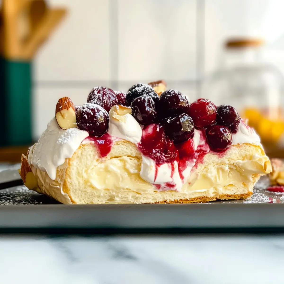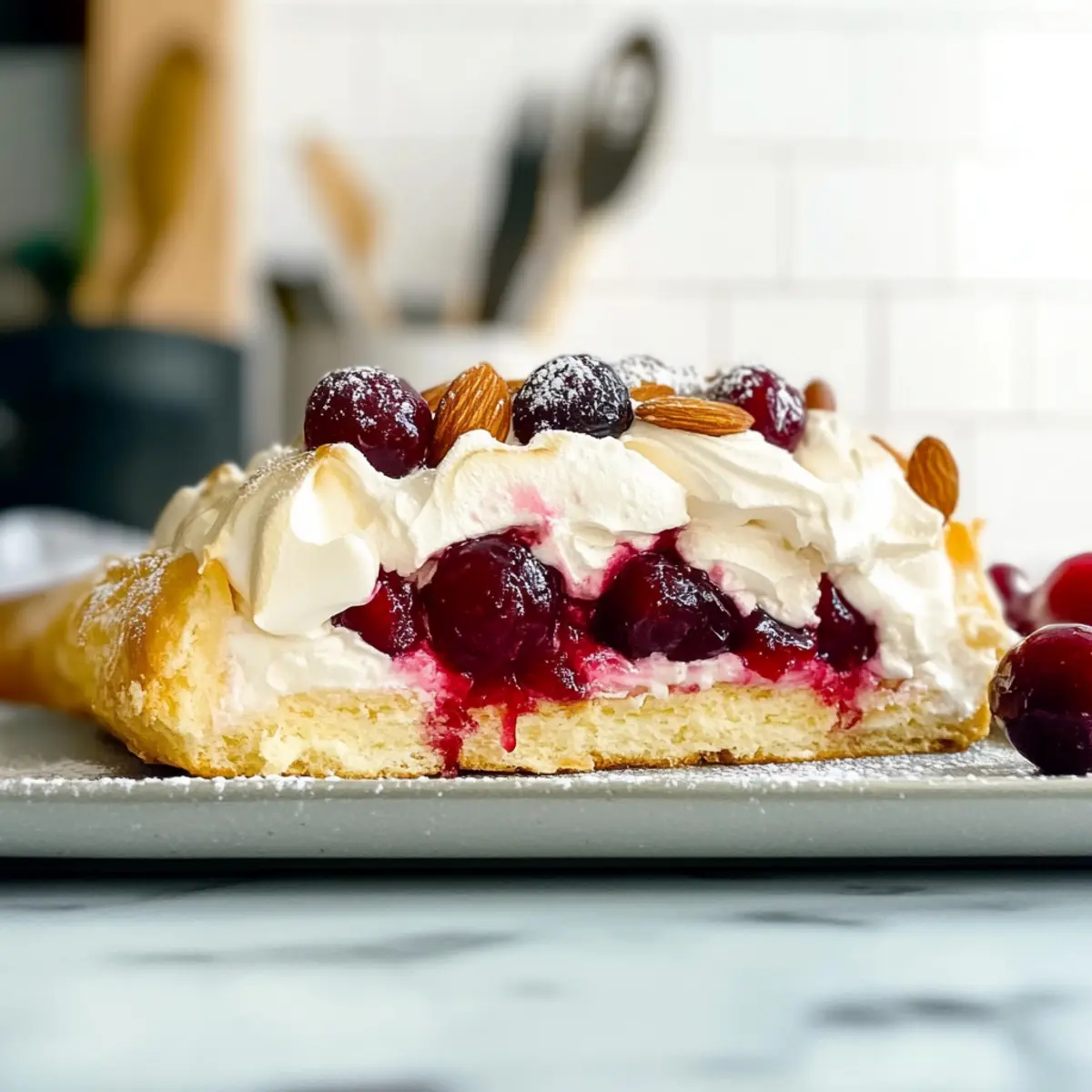 The moment I unwrapped the delicate layers of my Sour Cherry and Almond Roulade, memories of festive gatherings came flooding back. This dessert is a delightful twist on traditional meringue, coming together with a crispy exterior that contrasts beautifully with the creamy filling. What sets this roulade apart is its gluten-free allure, making it ideal for anyone looking to savor seasonal flavors without compromising on taste. Perfectly quick to prepare, it’s a stunning centerpiece that will undoubtedly impress your guests at any celebration. With a luscious amaretto cream and a tart cherry compote, each bite dances with refreshing brightness. Who wouldn’t want to indulge in a dessert that combines elegance with such vibrant, exhilarating flavors? Are you ready to create this show-stopping treat in your kitchen? Why will you fall in love with this roulade? Game-Changer: This Sour Cherry and Almond Roulade is a delectable gluten-free dessert that brings festive cheer to your table. Fresh Seasonal Flavors: Combining tart cherries with a sweet meringue base creates a celebration of flavor on your palate. Easy to Prepare: With simple ingredients and straightforward steps, you’ll impress your guests in no time. Beautiful Presentation: Its elegant layers and vibrant colors make it a captivating centerpiece at any gathering. Crowd-Pleaser: This dessert has the magic to convert even the most ardent fast food fans into meringue lovers! If you’re looking for more deliciously easy recipes, check out my Mac Meatloaf Casserole or Beef Pasta Skillet. Dive into the world of sweets with this unique roulade, and enjoy every delectable bite! Sour Cherry and Almond Roulade Ingredients For the Meringue Base Egg Whites – Provides structure for the meringue base; use room temperature for better volume. Salt – Enhances flavor and stabilizes the egg whites. Cream of Tartar – Stabilizes the egg whites during beating to prevent collapse. Caster Sugar – Adds sweetness and gloss; substitute with superfine sugar if needed. Cornflour – Adds stability to the meringue; no substitute recommended. Vinegar – Enhances the meringue’s stability; avoid substitutions. Vanilla Extract – Adds rich flavor; swap with almond extract for a nutty twist. Flaked Almonds – Provides a delightful crunch; can replace with chopped pistachios. For the Cherry Compote Frozen Pitted Cherries – The main flavor; fresh cherries can be used in season. Caster Sugar (for compote) – Sweetens the tart cherries; adjust based on sweetness preference. Lemon Juice – Brightens the compote; lime juice makes a good alternative. For the Cream Filling Alcohol (Amaretto or Cointreau) – Adds depth to the cream; optional but enhances flavor. Thickened Cream – Base for the filling; heavy cream can be substituted. Greek Yoghurt – Adds tang and texture; can replace with sour cream, but it’s optional. For Serving Icing Sugar – For dusting; optional but adds visual appeal. Fresh Raspberries – Optional garnish for a stunning presentation. Embrace the magic of this Sour Cherry and Almond Roulade and let its festive flavors delight your taste buds! Step‑by‑Step Instructions for Sour Cherry and Almond Roulade Step 1: Preheat the Oven Begin by preheating your oven to 150°C (130°C for fan ovens). While the oven warms, prepare a baking tray by greasing it lightly and lining it with baking paper to ensure easy removal of the meringue. The goal is to create a stable base for your Sour Cherry and Almond Roulade. Step 2: Prepare the Meringue Mixture In the bowl of a stand mixer, combine room temperature egg whites, salt, and cream of tartar. Using the whisk attachment, beat on medium speed until the mixture becomes frothy, approximately 2–3 minutes. This initial stage is crucial for incorporating air, which will provide the lovely volume needed for the meringue. Step 3: Incorporate the Sugar Gradually add caster sugar to the frothy egg whites, increasing the mixer speed to high. Continue to beat for 8–10 minutes or until stiff peaks form and the meringue is glossy. Carefully fold in the cornflour, vinegar, and vanilla extract, ensuring not to deflate the mixture, as this meringue is the foundation of the roulade. Step 4: Spread and Bake the Meringue Gently spread the meringue mixture onto the prepared baking tray, using a spatula to create an even layer. Sprinkle flaked almonds generously over the top for added crunch. Place the tray in the preheated oven and bake for 30–35 minutes, or until the meringue is golden brown and dry to the touch. Step 5: Cool the Meringue Once baked, remove the meringue from the oven and let it cool for 5–10 minutes. Carefully turn the meringue onto a sheet of dusted plastic wrap, allowing it to cool completely for about 1 hour. This step is vital for maintaining the structure of your Sour Cherry and Almond Roulade when rolling it. Step 6: Make the Cherry Compote In a saucepan, combine frozen pitted cherries, sugar, lemon juice, cornflour, and a splash of water. Cook over medium heat for 10 minutes, stirring gently until the mixture thickens and becomes syrupy. Once ready, set the compote aside to cool while you prepare the cream filling. Step 7: Prepare the Cream Filling In a mixing bowl, whip thickened cream and icing sugar until soft peaks form. Gently fold in Greek yoghurt and your choice of liqueur, mixing until firm peaks are achieved. This creamy layer will complement the sour cherry compote and add a luxurious texture to your Sour Cherry and Almond Roulade. Step 8: Assemble the Roulade Spread half of the whipped cream filling evenly over the cooled meringue, followed by half of the cherry compote. Carefully roll the meringue from the long side, using the plastic wrap to assist you. Keep the roulade tight yet gentle to preserve its delicate structure while rolling. Step 9: Final Touches and Serve Transfer your rolled roulade to a serving plate. Top it with the remaining cream filling, fr