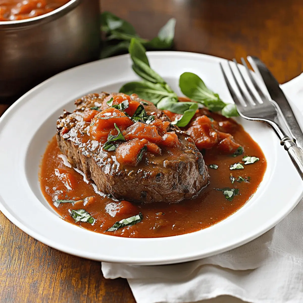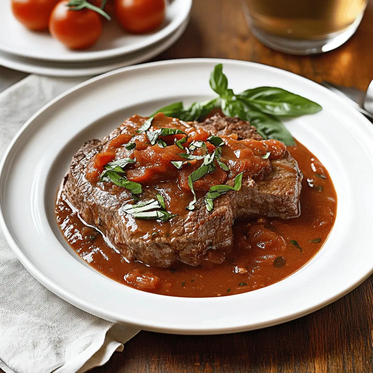 The aroma wafting from the kitchen took me back to my grandmother’s Sunday dinners, where the warmth of family and rumbling stomachs filled every corner of the room. Today, I’m excited to share my version of a classic comfort dish: Steak Pizzaiola Recipe. This hearty Italian staple features tender chuck steaks bathed in a flavorful tomato sauce that promises to captivate your palate. What I love most about this dish is its simplicity; with just a handful of ingredients, you can easily create a meal that feels special and rustic. Plus, it’s versatile enough to allow you to swap in chicken or pork if you’re craving something different! Whether you’re a seasoned chef or just starting out, this recipe ensures you’ll experience the joy of homemade cooking without the fuss. Curious how to bring this slice of Italian delight to your table? Let’s dive in! Why You’ll Love This Steak Pizzaiola Recipe Simplicity: With just a few wholesome ingredients, creating this dish is a breeze, even for beginners. Versatile Options: Feel free to switch up the meat; it’s delicious with beef, chicken, or pork, catering to whatever you have on hand. Flavor Explosion: The rich tomato sauce infused with herbs and spices ensures every bite is bursting with authentic Italian flavor. Hearty Comfort: This dish brings warmth and satisfaction, making it perfect for cozy family dinners or impressive gatherings. Pair it with some [Mediterranean Steak Bowl] for a variety of flavors at your table! Crowd-Pleaser: Whether you’re cooking for friends or family, this Steak Pizzaiola will have everyone raving about your culinary skills. Prepare to make this your go-to recipe! Steak Pizzaiola Ingredients • Discover the essential ingredients to create this comforting dish! For the Steak Chuck Steak (3 lbs) – This robust cut becomes incredibly tender when slow-cooked; you could also use sirloin or flank steak for a change. For the Sauce Olive Oil – Adds richness and aids in browning; feel free to substitute with avocado oil for a unique twist. Large Onion – Brings sweetness and depth to the sauce; yellow onions are ideal, but sweet onions work well too. Garlic (2 cloves) – Enhances the flavor profile; if you’re out of fresh garlic, garlic powder can stand in nicely. Hot Cherry Pepper (optional) – For that extra kick; omit it for a milder dish or use crushed red pepper flakes as an alternative. Tomato Paste (2 tablespoons) – Intensifies the tomato flavor; in a pinch, you can use tomato sauce instead. Peeled Plum Tomatoes (28 oz can) – Forms the base of your sauce; San Marzano tomatoes provide an authentic Italian taste. Bay Leaf (1) – Infuses aromatic flavors into the sauce; just remember to take it out before serving! Oregano (1 teaspoon) – Offers a lovely herbaceous note; fresh oregano can be substituted if you have it on hand. Salt (1 teaspoon) – Essential for flavor enhancement; adjust to suit your taste preferences. Dried Basil (1 teaspoon) – Complements the overall sauce; fresh basil can be used but be mindful to adjust the amount. With these ingredients laid out, you’re well on your way to crafting a mouthwatering Steak Pizzaiola Recipe that will warm hearts and appetites alike! Step‑by‑Step Instructions for Steak Pizzaiola Recipe Step 1: Brown the Steak In a large skillet over medium-high heat, add a couple of tablespoons of olive oil. Once the oil is shimmering, carefully place the chuck steaks in the skillet. Brown each side for about 4-5 minutes until they develop a rich, golden color. Remove the steaks from the skillet and set them aside on a plate while you prepare the sauce. Step 2: Sauté Aromatics Using the same skillet, reduce the heat to medium and add the sliced onion and minced garlic. Sauté for 3-5 minutes until the onions become translucent and the garlic is fragrant, stirring frequently to avoid burning. This step infuses the base of your Steak Pizzaiola with deep, savory flavors, preparing it for the next ingredients. Step 3: Add Heat If you’re using hot cherry peppers, add them to the onions and garlic in the skillet along with the tomato paste. Cook for an additional minute, stirring to combine everything well. This will enhance the flavor profile of the sauce, contributing a nice kick that balances with the sweetness of the onions. Step 4: Make Sauce Pour in the canned peeled plum tomatoes, scraping the bottom of the skillet to release any browned bits for extra flavor. Add the bay leaf, oregano, salt, and dried basil. Stir well and bring the mixture to a gentle boil, allowing the aromas to mingle beautifully as the sauce starts to bubble. Step 5: Simmer Steak Gently return the browned steak to the skillet, nestling it into the simmering sauce. Cover the skillet with a lid, reduce the heat to low, and let it simmer for about 1.5 hours. During this time, the steaks will tenderize in the flavorful sauce, becoming melt-in-your-mouth delicious while the sauce thickens slightly. Step 6: Serve and Enjoy After cooking, remove the bay leaf and check the steak for tenderness. Serve the rich Steak Pizzaiola over a bed of pasta, polenta, or alongside crusty bread to soak up the sauce. This warm, hearty dish invites everyone to gather and enjoy, bringing Italian comfort right to your table. What to Serve with Steak Pizzaiola Create a delightful Italian dining experience alongside this flavor-packed dish. Creamy Polenta: The smooth, buttery texture of polenta perfectly complements the rich tomato sauce, making every bite indulgent. Garlic Bread: Crispy on the outside and soft within, garlic bread is ideal for soaking up the robust sauce, tantalizing your taste buds. Roasted Vegetables: Colorful veggies like zucchini and bell peppers provide a fresh crunch that balances the hearty meat and sauce. Fresh Arugula Salad: A peppery arugula salad dressed in lemon vinaigrette brightens the meal, adding a refreshing contrast to the comforting flavors. Pasta Aglio e Olio: Simp