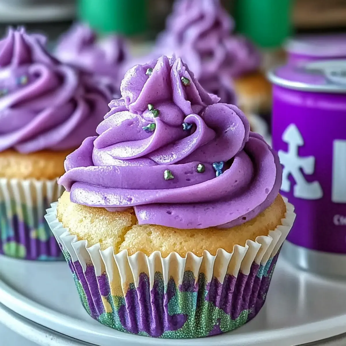 Standing in the kitchen, I couldn’t help but smile as the vibrant purple batter swirled in my mixing bowl, whispering promises of delightful sweetness. These Ube Cupcakes with Purple Frosting are not just a treat; they encapsulate the heart and soul of Filipino cuisine and make a stunning centerpiece for any gathering. With their fluffy texture and enchanting nutty flavor, they offer the perfect escape from the usual dessert routine. Plus, you’ll find this recipe a breeze to whip up, making it ideal for both beginner bakers and seasoned pros. And if you’re wanting to switch things up, there are endless possibilities for substitutions! Are you ready to discover how this simple combination of ingredients can create a delightful culinary masterpiece? Why are Ube Cupcakes so special? Distinctive Color: The stunning purple hue of these cupcakes not only catches the eye but also sparks curiosity and excitement. Unique Flavor: Ube, or purple yam, delivers a delightful nutty taste that’s unlike any traditional cupcake—perfect for adventurous eaters! Versatile Base: This recipe allows for numerous adaptations, whether you want to go gluten-free or vegan, making it inclusive for everyone. Quick To Make: With simple steps and common ingredients, these cupcakes can be ready in no time, perfect for when you need a sweet treat on the fly. Cultural Connection: Celebrate Filipino culture with every bite; these cupcakes are a fantastic introduction to ube and its rich heritage. Perfect Pairing: Serve with a cup of coffee or a refreshing drink like Lemonade Twist Refreshing to elevate your dessert experience! Ube Cupcake Ingredients For the Cupcakes • All-purpose flour – Structure; substitute with gluten-free all-purpose blend for a gluten-free version. • Baking powder – Leavening agent; this ensures your ube cupcakes rise beautifully. • Salt – Enhances flavor, bringing out the sweetness of the ube. • Ube (purple yam) – The star flavor; use mashed ube or rehydrated ube powder for authenticity. • Granulated sugar – Sweetness; brown sugar can add a deeper flavor profile to your cupcakes. • Butter – Adds richness and moisture; can substitute with coconut oil for a dairy-free option. • Eggs – Acts as a binding agent; replace with flax eggs for a vegan option. • Milk – Moisture; almond or coconut milk can be used to keep it dairy-free. • Ube extract – Enhances flavor and color; crucial for achieving those vibrant purple ube cupcakes. For the Frosting • Powdered sugar – Provides sweetness and structure for your frosting; it’s essential for that creamy consistency. • Butter – A must for richness in your frosting; substitute with vegan butter for a dairy-free option. • Ube extract – Adds depth of flavor and color that complements the cupcake perfectly. Step‑by‑Step Instructions for Ube Cupcakes with Purple Frosting Step 1: Preheat the Oven Begin by preheating your oven to 350°F (175°C). This crucial step ensures that your Ube Cupcakes will bake evenly. While the oven heats up, gather your cupcake liners and a muffin tin, placing the liners inside the tin for easy filling later on. Step 2: Prepare the Dry Ingredients In a medium bowl, whisk together the all-purpose flour, baking powder, and salt until well combined. This mixture will create the foundation for the Ube Cupcakes, ensuring they have the right structure. Set this bowl aside so you can focus on the wet ingredients in the next step. Step 3: Cream Butter and Sugar In a large mixing bowl, cream together the softened butter and granulated sugar using an electric mixer on medium speed for about 2-3 minutes. You’ll want the mixture to become light and fluffy, turning a pale yellow color. This process incorporates air, which helps make your cupcakes light as they bake. Step 4: Mix in the Eggs and Ube Add the eggs one at a time to the butter-sugar mixture, mixing well after each addition. Then, gently fold in the mashed ube or rehydrated ube powder, along with the ube extract. Continue mixing until all the ingredients are thoroughly integrated, and the batter is smooth with a lovely purple hue. Step 5: Combine Wet and Dry Ingredients Gradually add the dry ingredients to the wet mixture, alternating with the milk. Mix on low speed until just combined; this prevents overmixing, which can make your Ube Cupcakes dense. Aim for a smooth, homogenous batter without lumps, and be sure not to overwork it. Step 6: Fill the Liners and Bake Spoon the batter evenly into your prepared cupcake liners, filling each about two-thirds full to allow for rising. Bake in the preheated oven for approximately 20 minutes or until a toothpick inserted into the center comes out clean. The tops should look slightly golden and feel springy to the touch. Step 7: Cool the Cupcakes Once baked, remove the Ube Cupcakes from the oven and let them cool in the pan for about 5 minutes. Then, transfer them to a wire rack to cool completely. This step is essential to avoid melting your frosting later on, as hot cupcakes can cause it to slide off. Step 8: Prepare the Purple Frosting While the cupcakes cool, prepare the frosting by beating softened butter and powdered sugar together in a bowl. Start on low speed to prevent a sugar cloud, and then increase to medium-high. Add the ube extract and mix until creamy and smooth, achieving a lovely purple color that mirrors your cupcakes. Step 9: Frost the Cupcakes Once the Ube Cupcakes have completely cooled, use a piping bag fitted with a star tip to frost each cupcake generously with the vibrant purple ube buttercream. Go for a swirl pattern or simple dollop depending on your decor preferences. These beautiful Ube Cupcakes with Purple Frosting are now ready to impress your family and friends! Ube Cupcakes with Purple Frosting Variations Feel free to get creative and make these Ube Cupcakes your own with these delightful swaps and additions! Gluten-Free: Use a gluten-free all-purpose blend 
