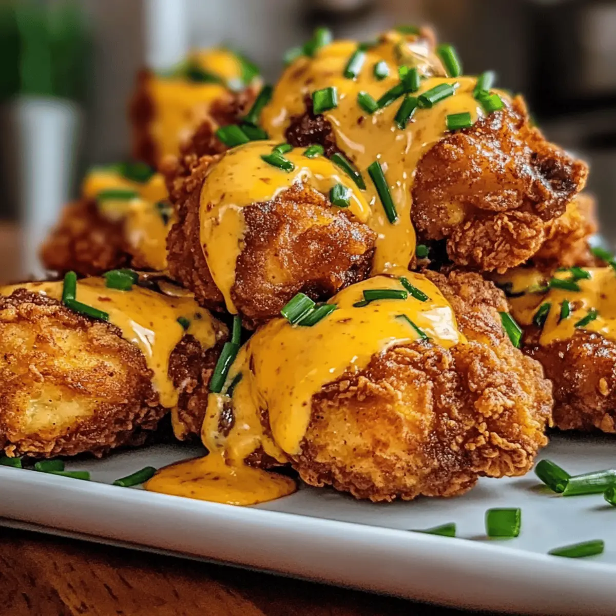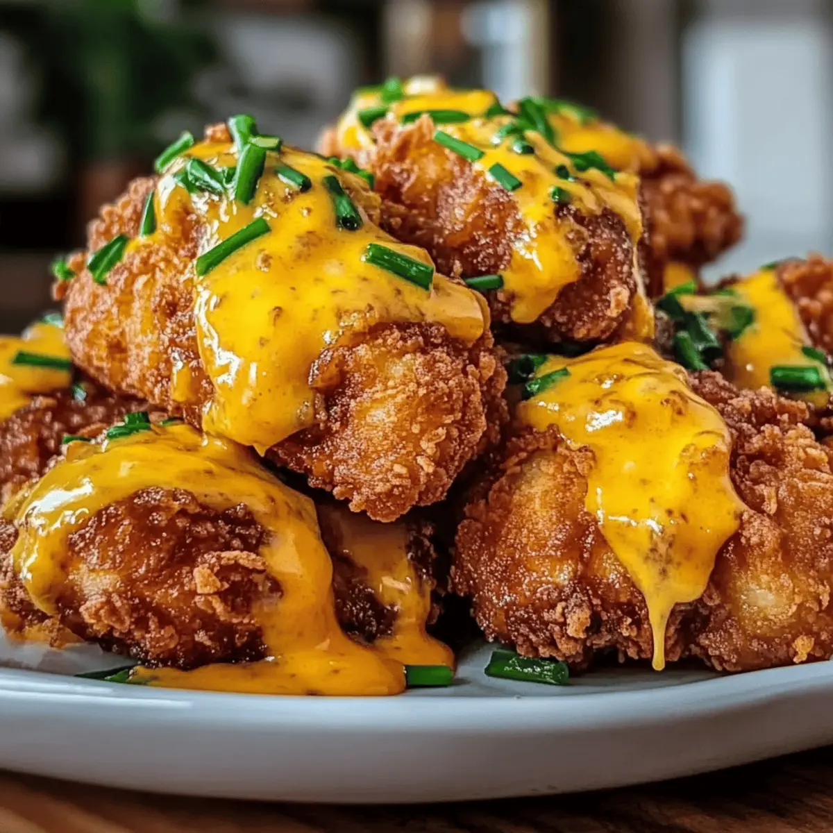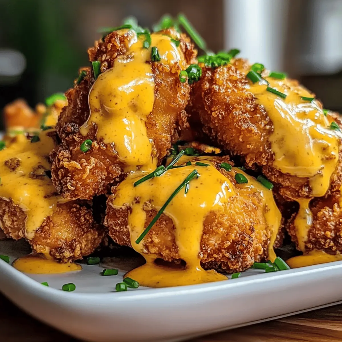 Delight in this Ultimate Crispy Fried Chicken with Creamy Sauce, featuring buttermilk marinated chicken, a crunchy exterior, and a creamy cheddar sauce.